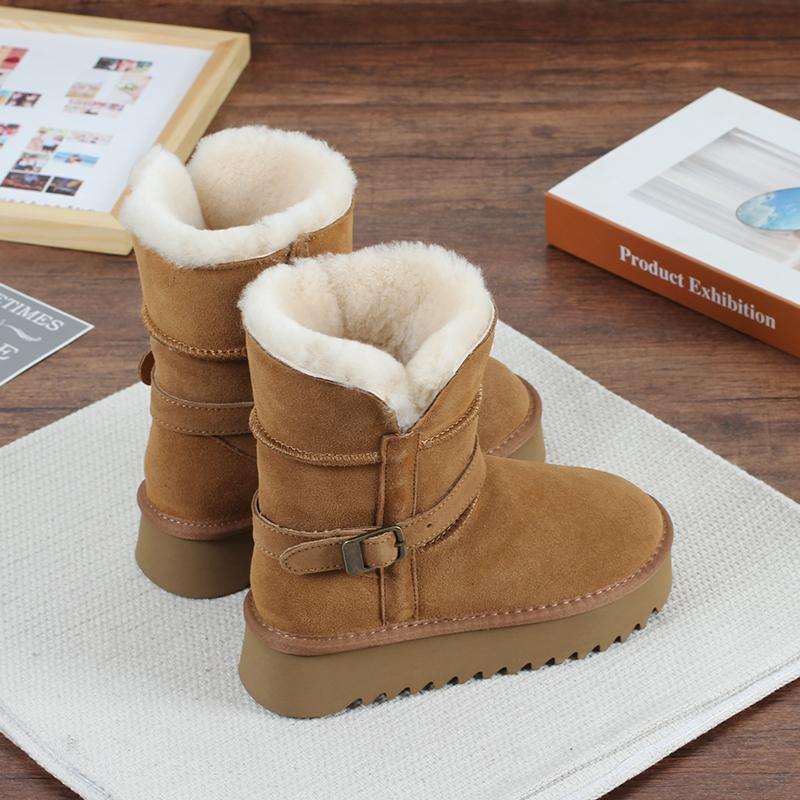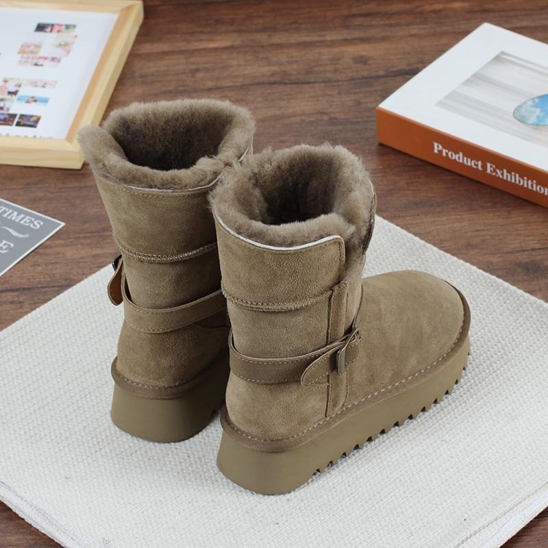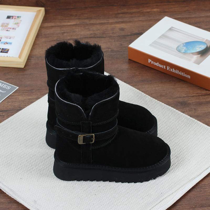 冬季厚底雪地靴女中筒2025年新款皮带扣防滑羊毛靴女加厚保暖棉鞋