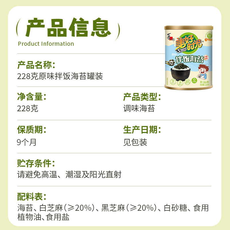 喜之郎美好时光原味拌饭海苔碎228g*2罐即食饭团紫菜脆儿童零食品