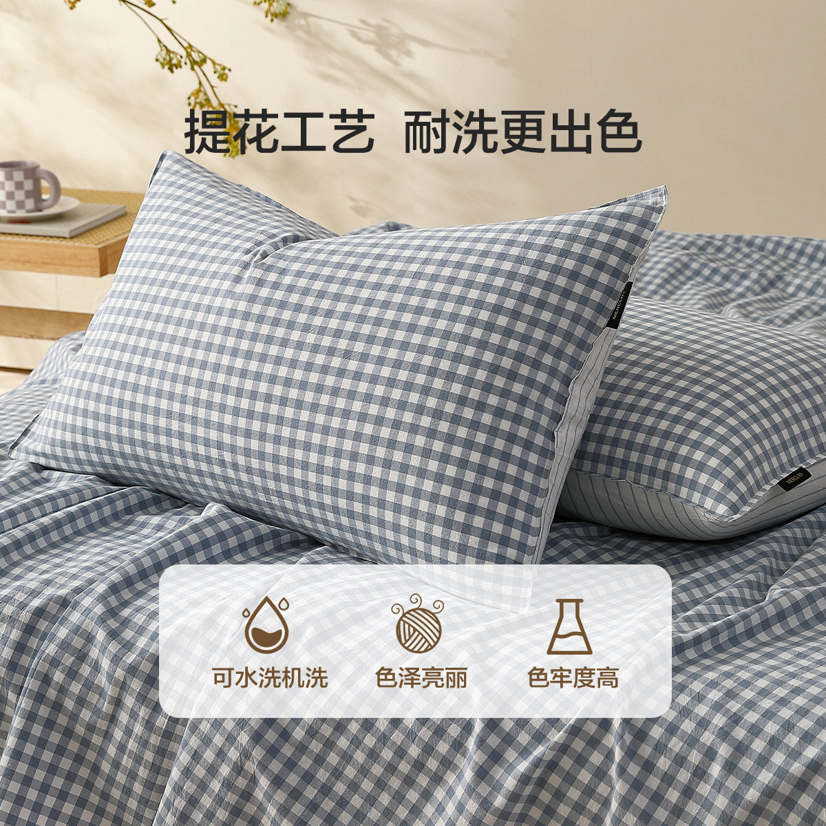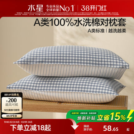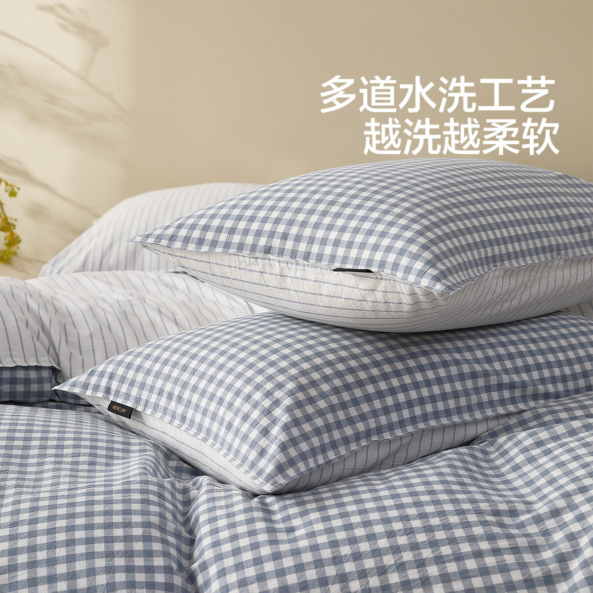 水星家纺简约水洗棉对枕套全棉枕头套一对装学生宿舍单双人床品