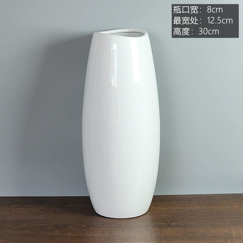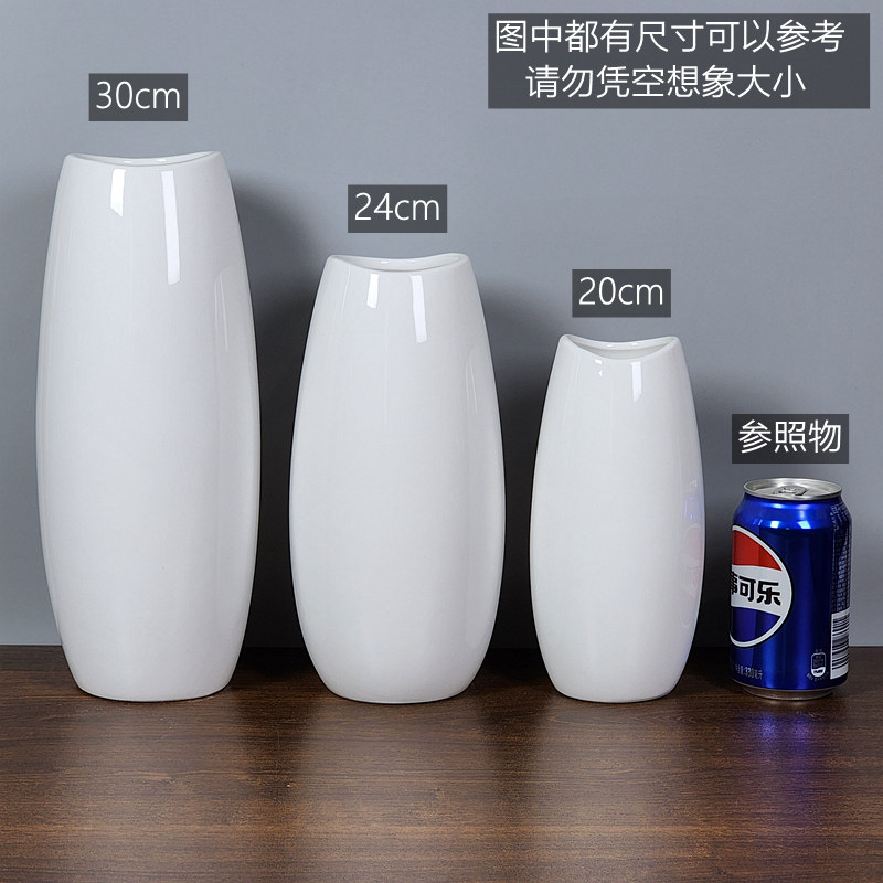 亮白色鹅蛋陶瓷花瓶大中小号桌面水养插花发财果摆件内外釉面光滑