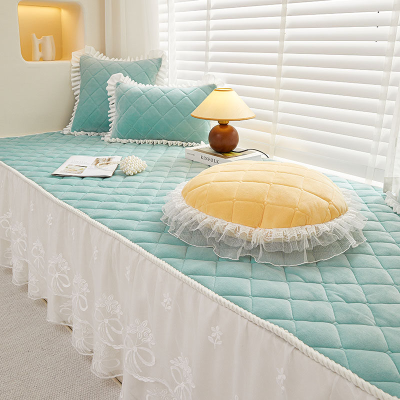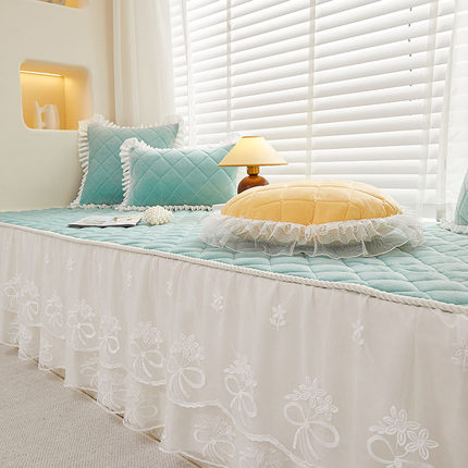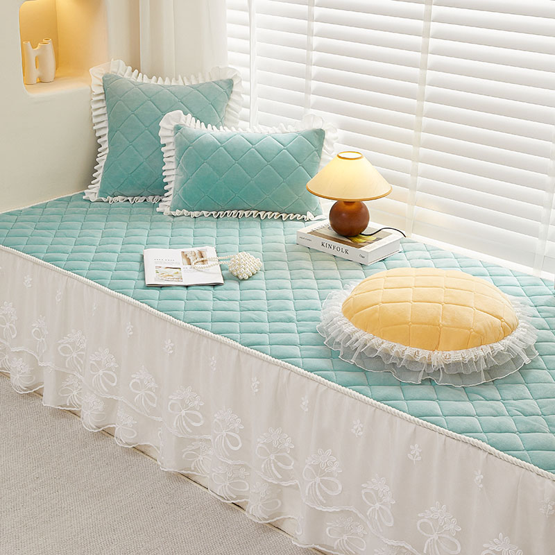 蕾丝垂边公主风飘窗垫窗台垫卧室可拆洗阳台垫子防滑海绵坐垫定制