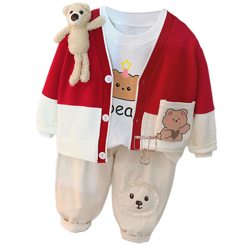 男童春装三件套帅气婴儿新年衣服洋气儿童红色童装1一4岁宝宝套装