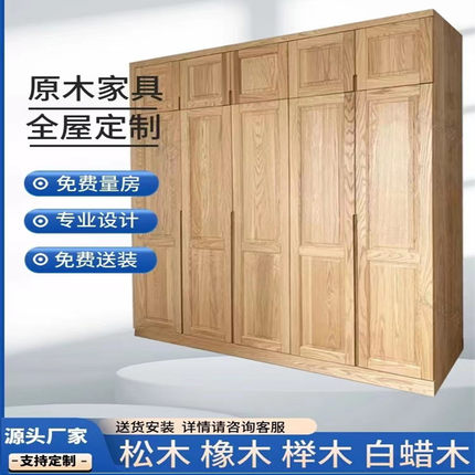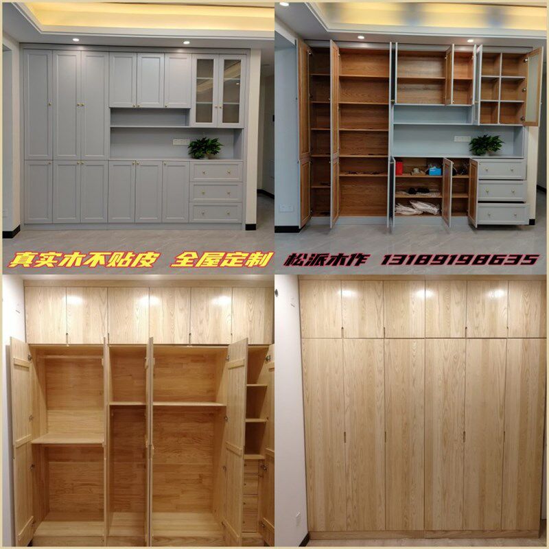 实木家具全屋整体定制原木衣柜卧室开放式帽间推拉开门简约储物柜