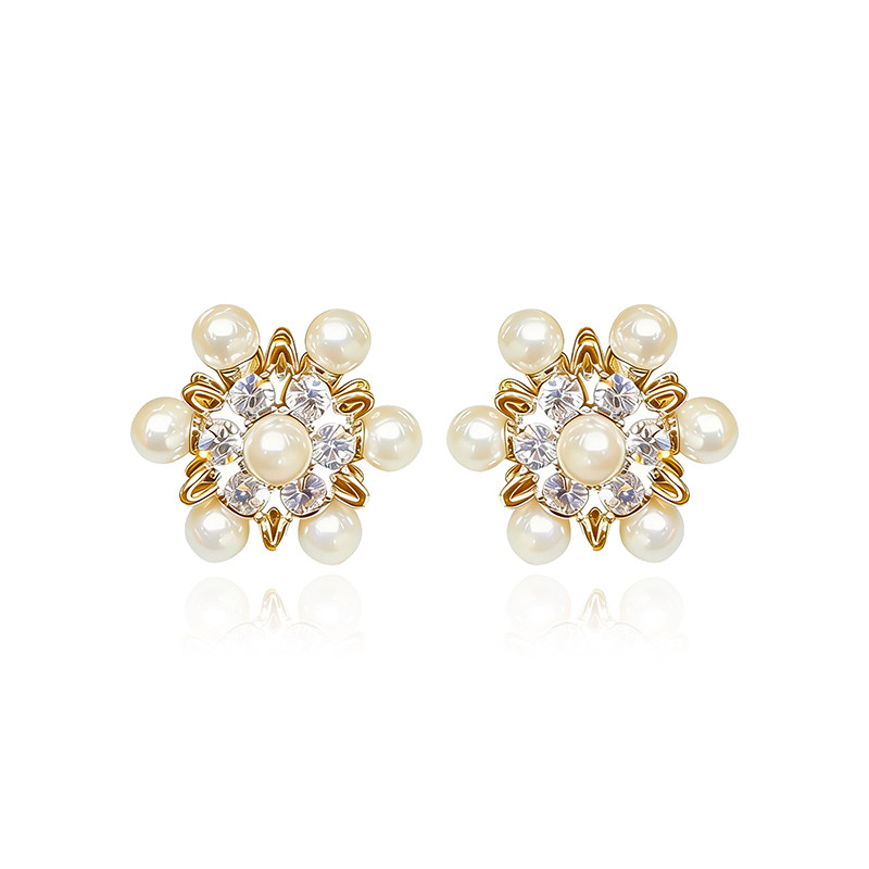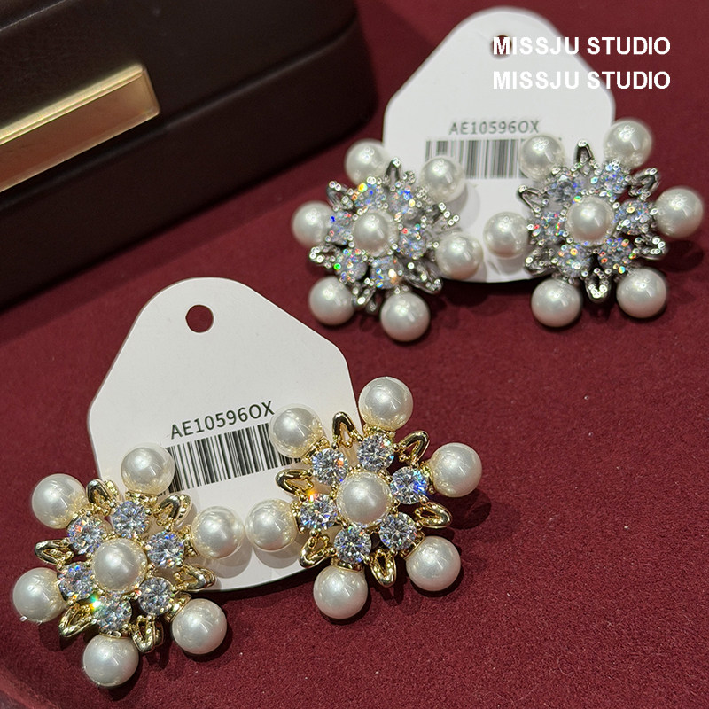 法式优雅宫廷精致珍珠雪花镶钻耳环奢华礼服配饰水晶满钻轻奢洋气