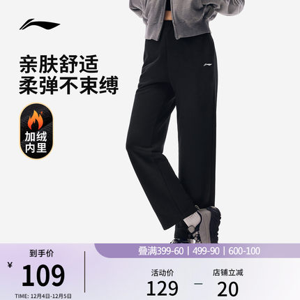 李宁卫裤女士新款健身跑步长裤秋冬季加绒反光窄直筒针织运动裤女