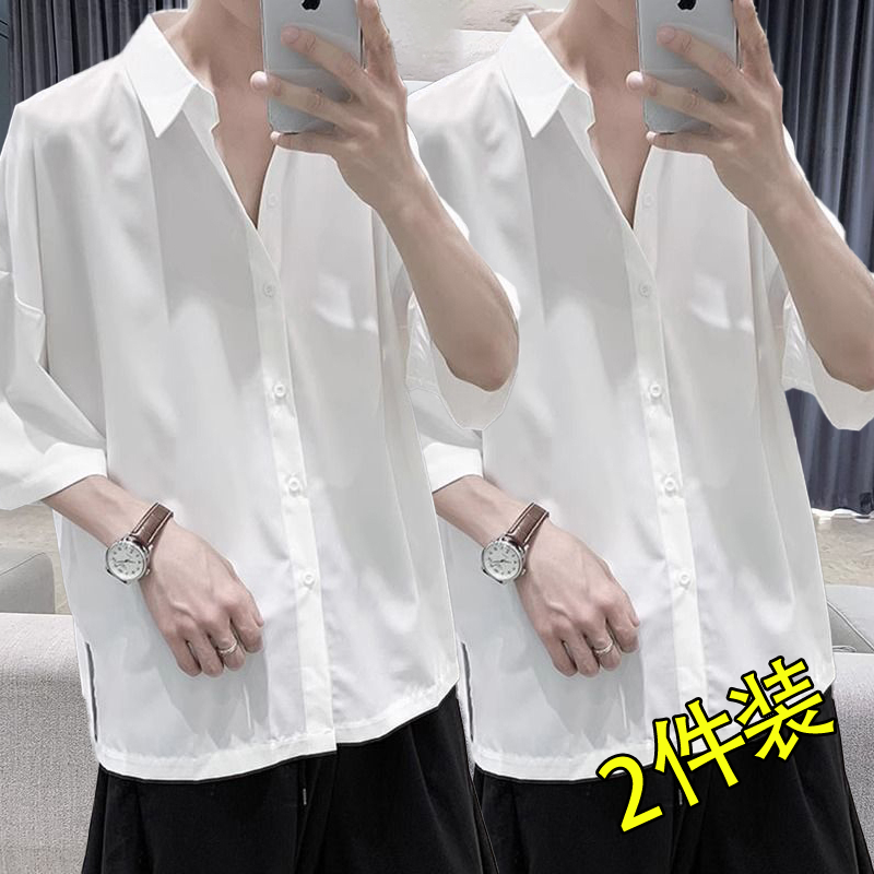 冰丝短袖衬衫男夏季宽松休闲半袖日系潮流青少年男生休闲多色外套