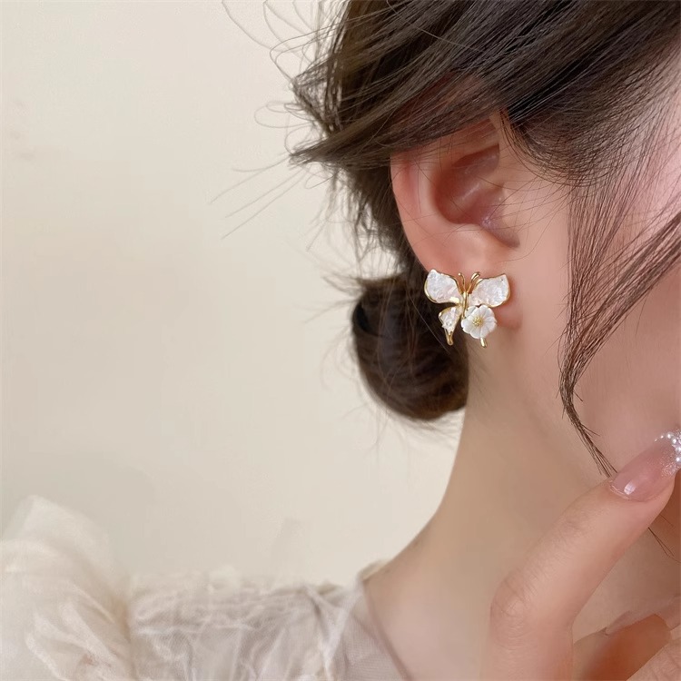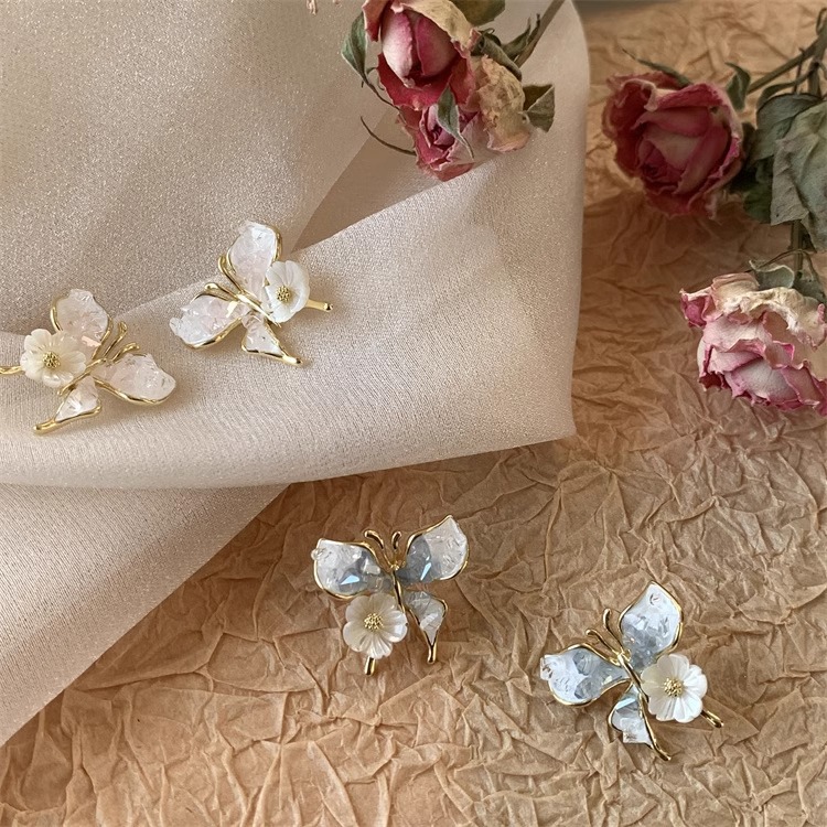 小众设计渐变蓝色耳钉女春夏韩国高级感气质花朵耳环耳饰