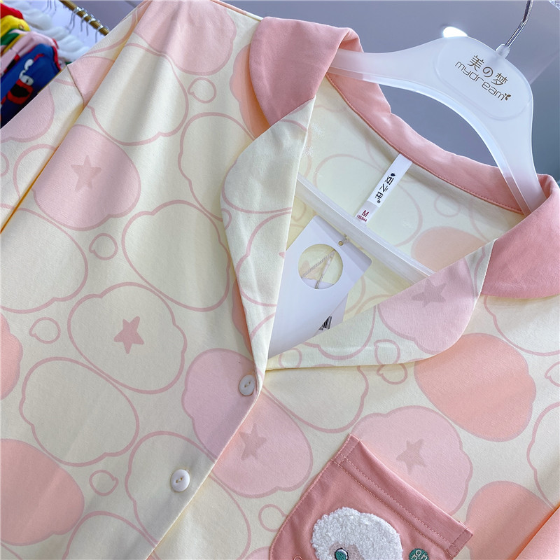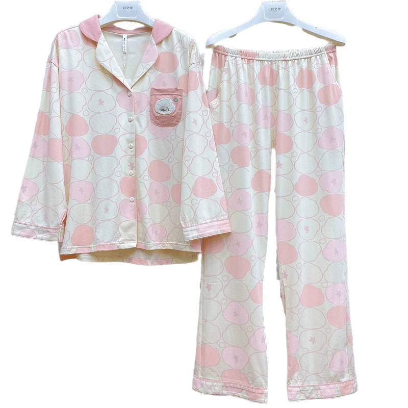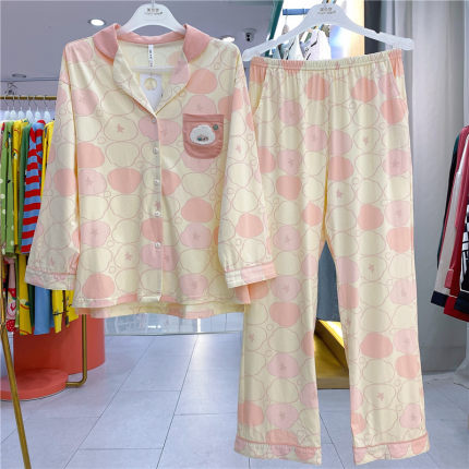 安之伴女士睡衣2023春季新品弹力针织纯棉开衫时尚休闲家居服套装