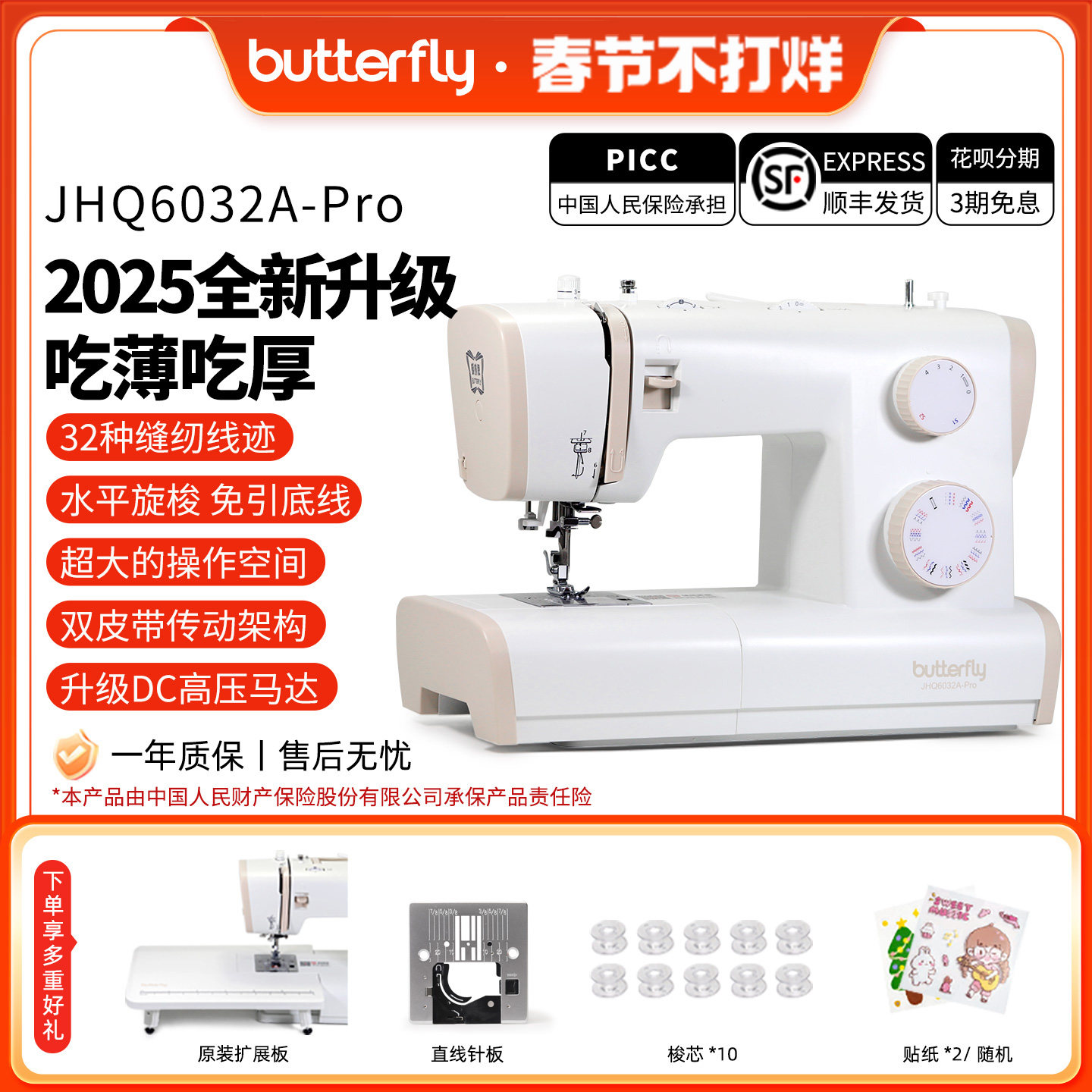 【官方旗舰】蝴蝶牌6032家用电动多功能台式缝纫机锁眼锁边新款