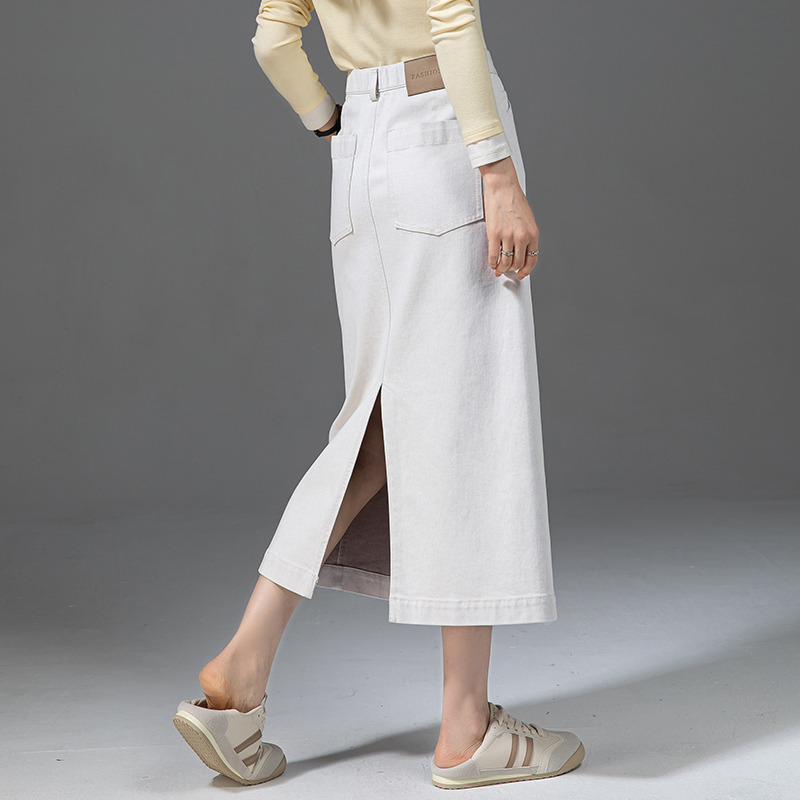 白灰色牛仔半身裙女2025春秋新款高腰复古显瘦a字后开叉直筒裙子