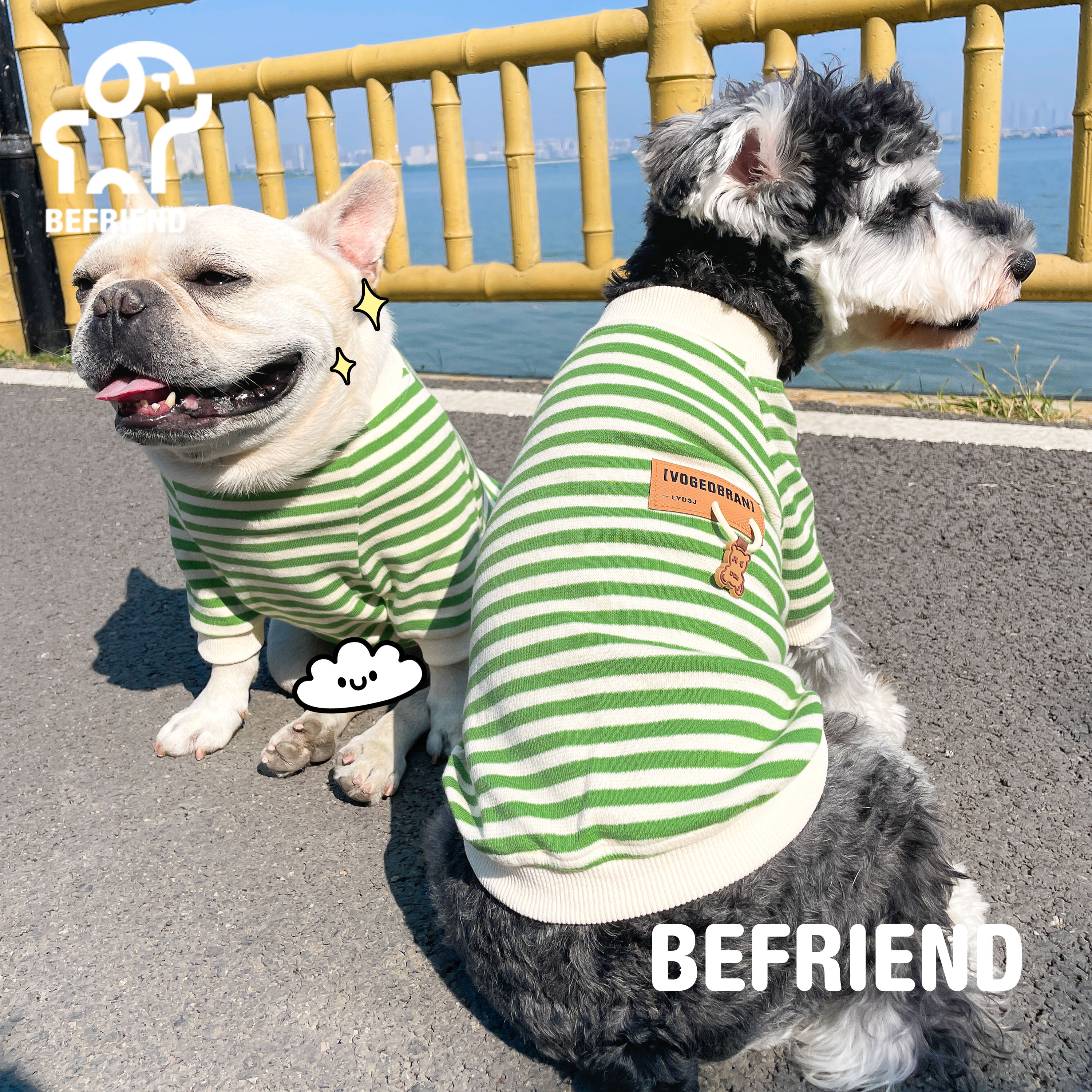 TT 狗狗衣服宠物春季法斗雪纳瑞泰迪套头衫绿色条纹可爱春夏T恤