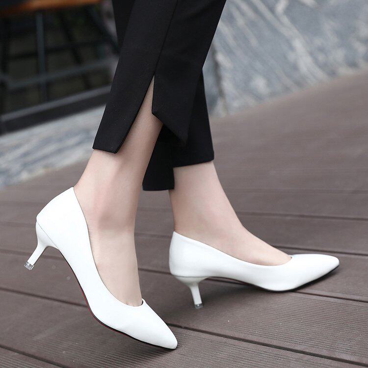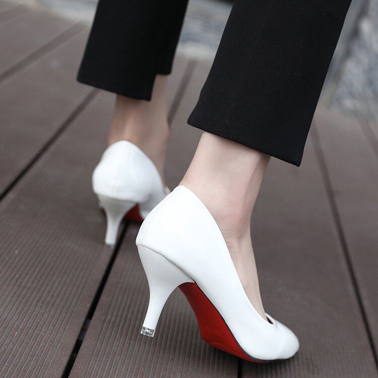 白色礼服高跟鞋女中跟3cm大码工作职业细跟浅口漆皮性感单鞋红底5