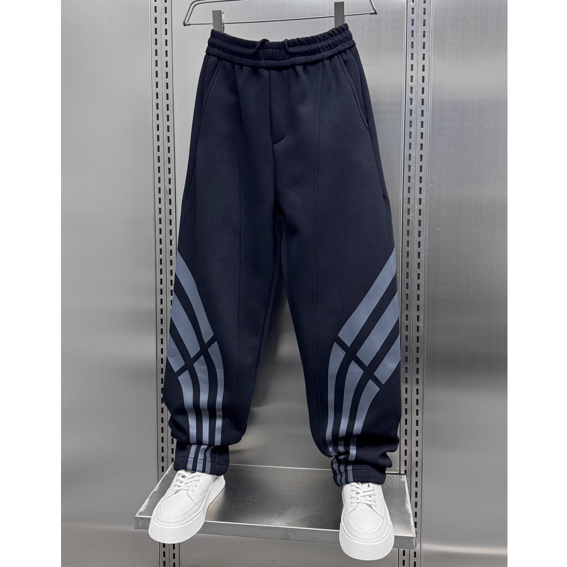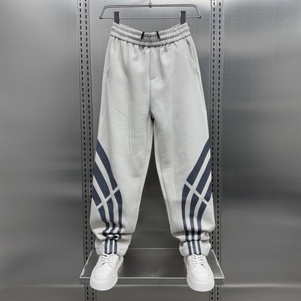 2025秋季新款时尚条纹拼接休闲裤男裤子潮流痞帅抽绳松紧腰哈伦裤