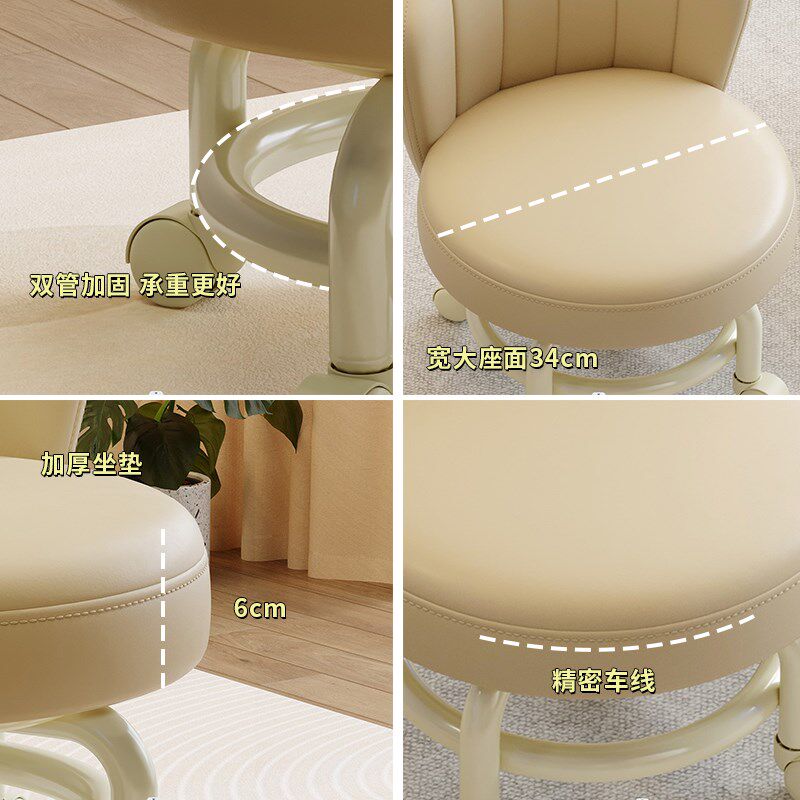 万向轮儿童座椅靠背滑轮矮t凳家用换鞋小板凳懒人圆凳修脚沙发凳