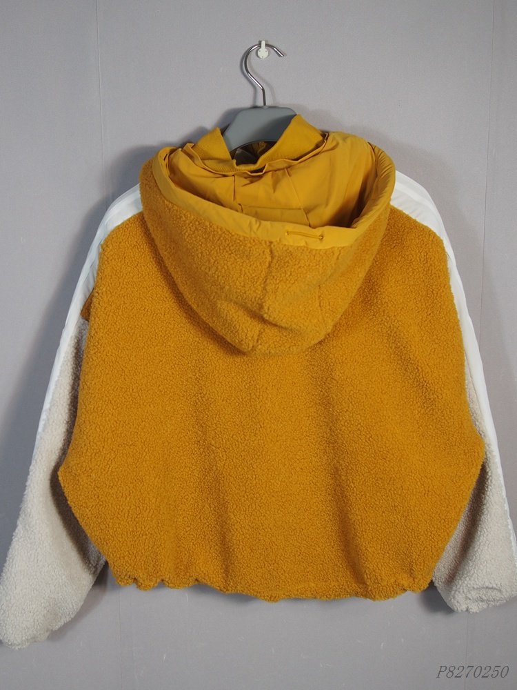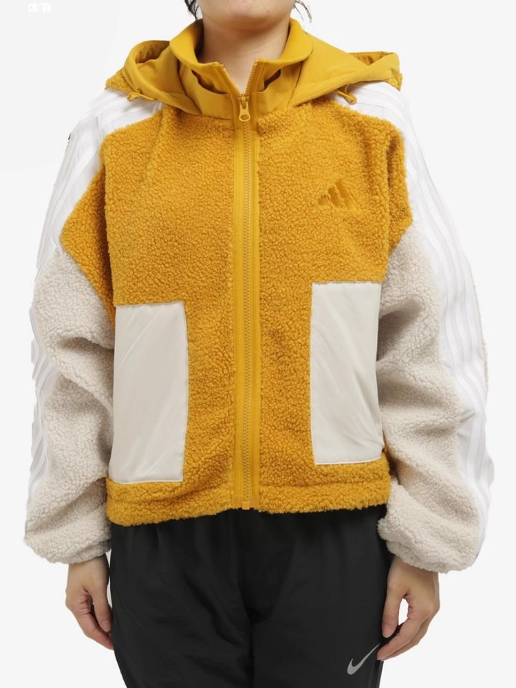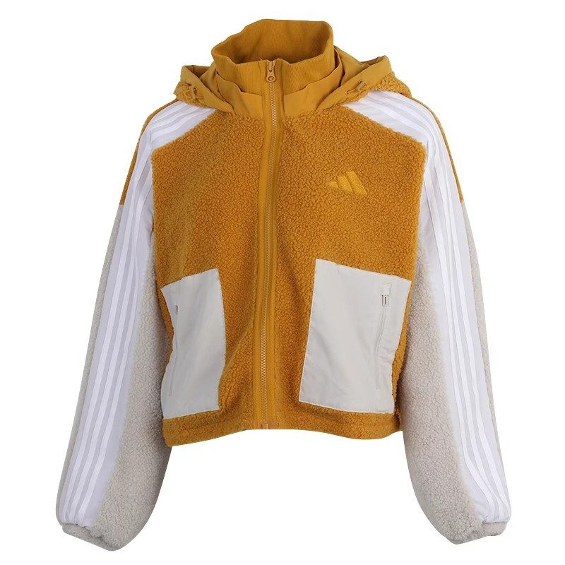 阿迪达斯女子短款摇粒绒羊羔绒效果保暖时尚三条纹连帽外套GM1425