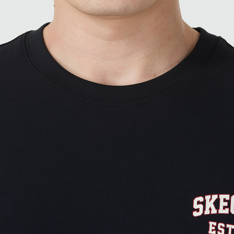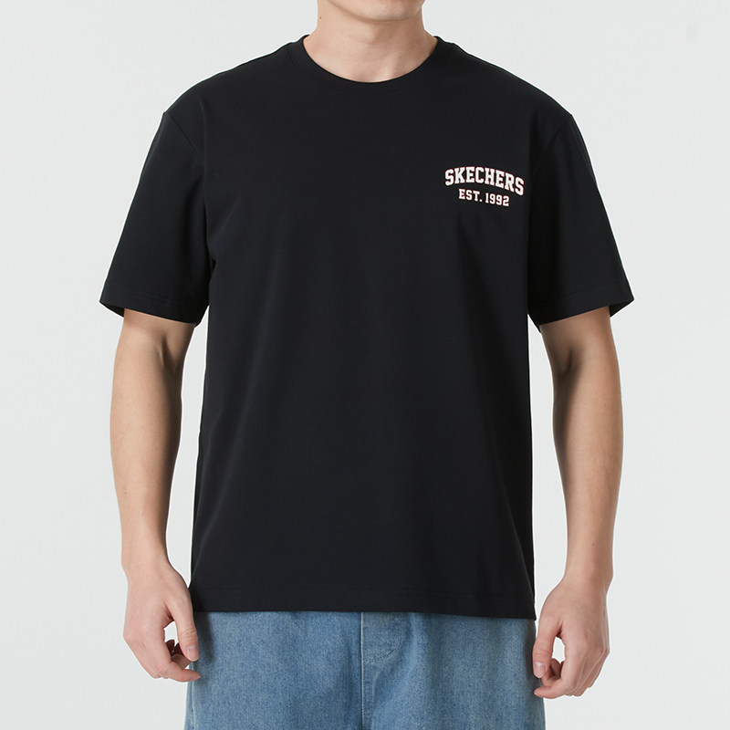斯凯奇黑色短袖男装女装宽松情侣运动服圆领透气T恤衫半袖五分袖