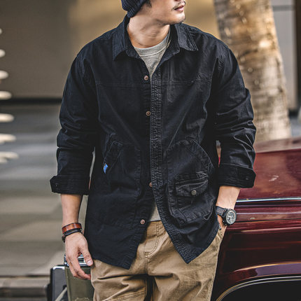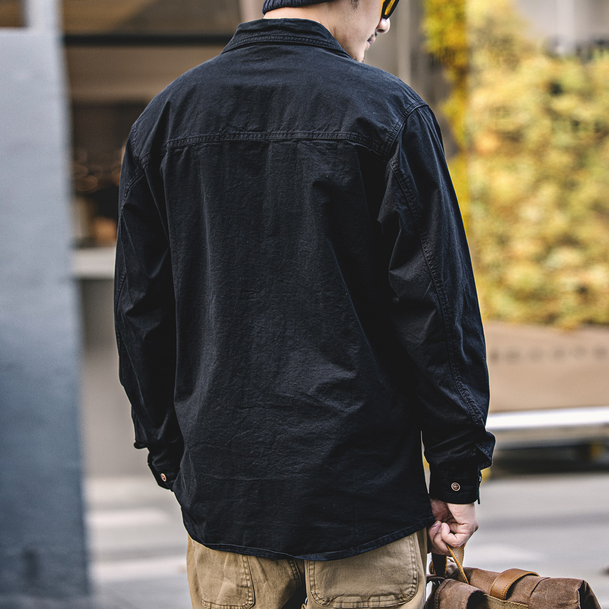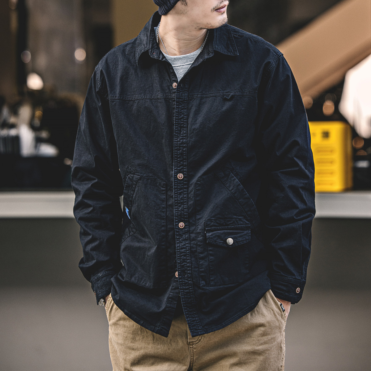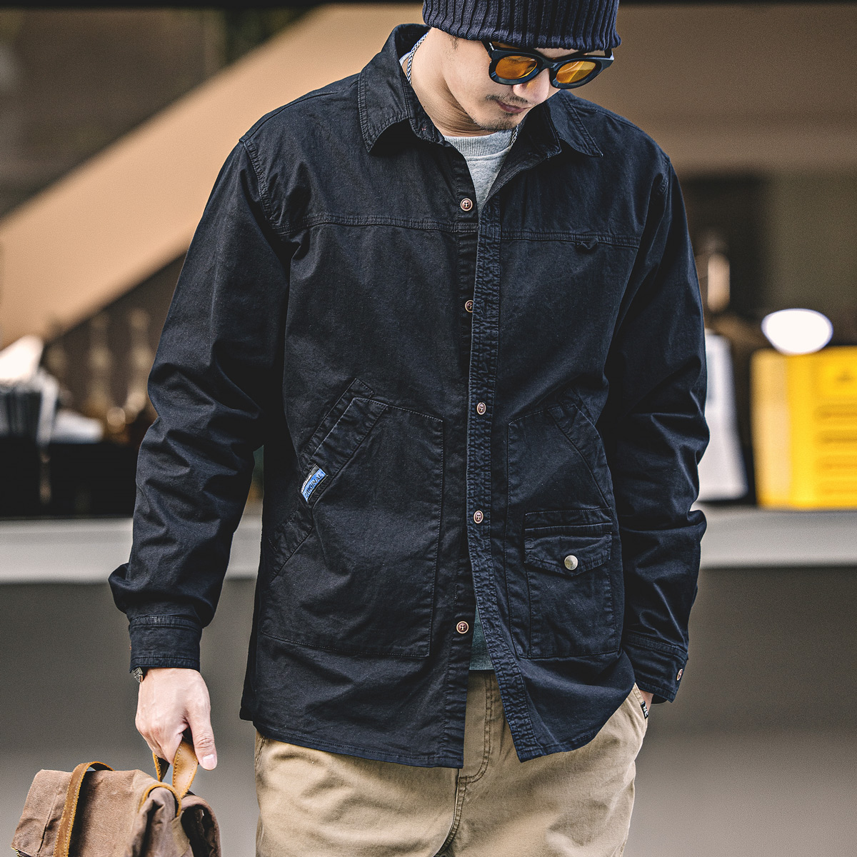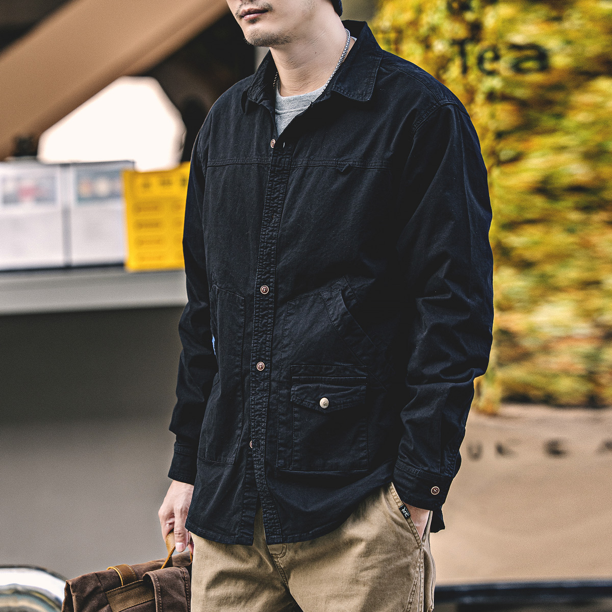 黑色美式复古工装夹克男秋季宽松日系潮牌ins休闲寸衫外套