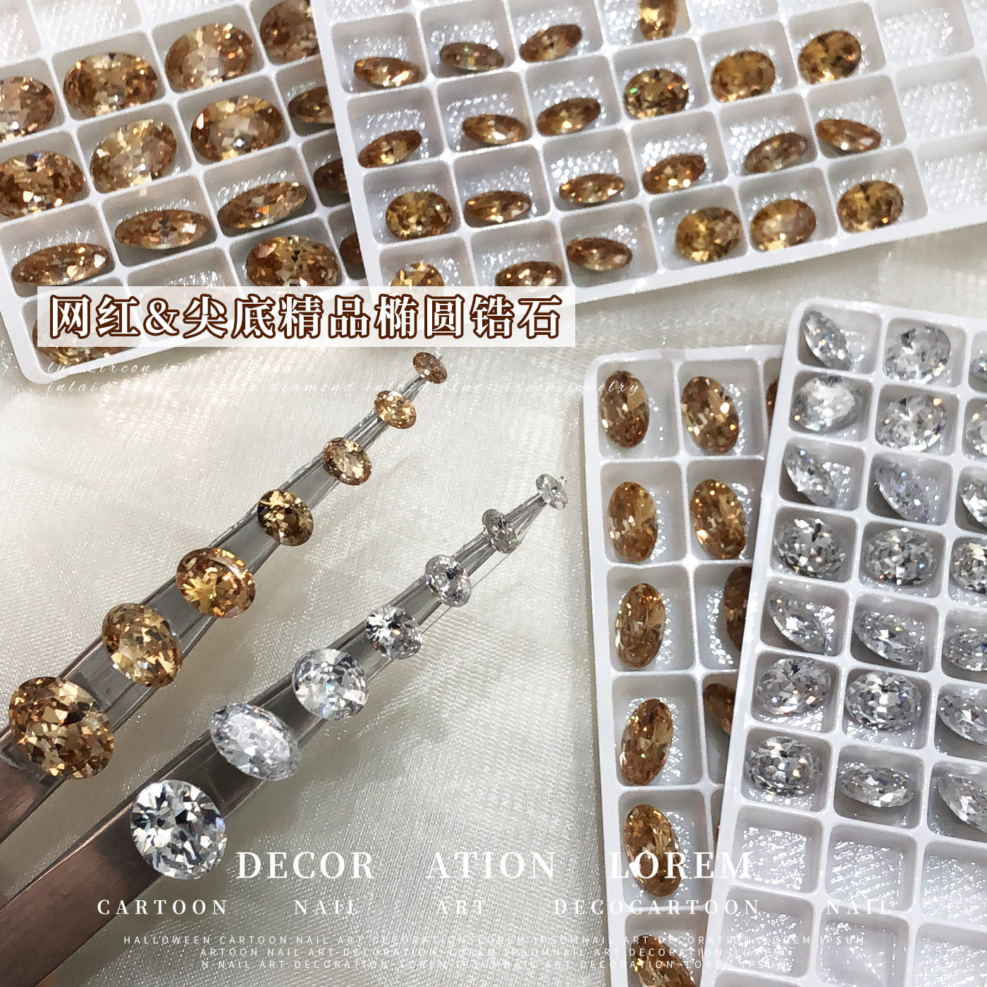 美甲饰品透白香槟椭圆旦形锆石钻