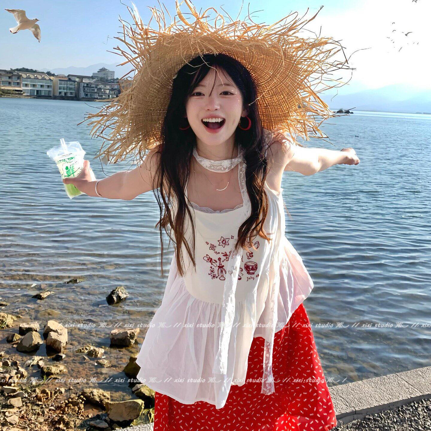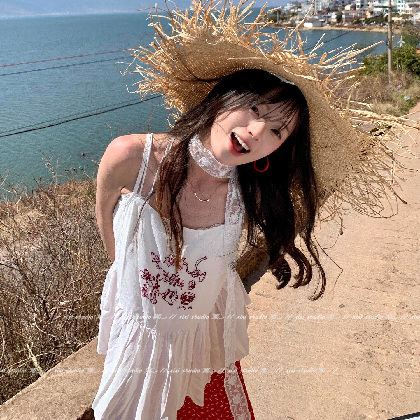 甜美白色花朵蕾丝丝巾项链女2026新款春夏高级感系脖长条颈链配饰