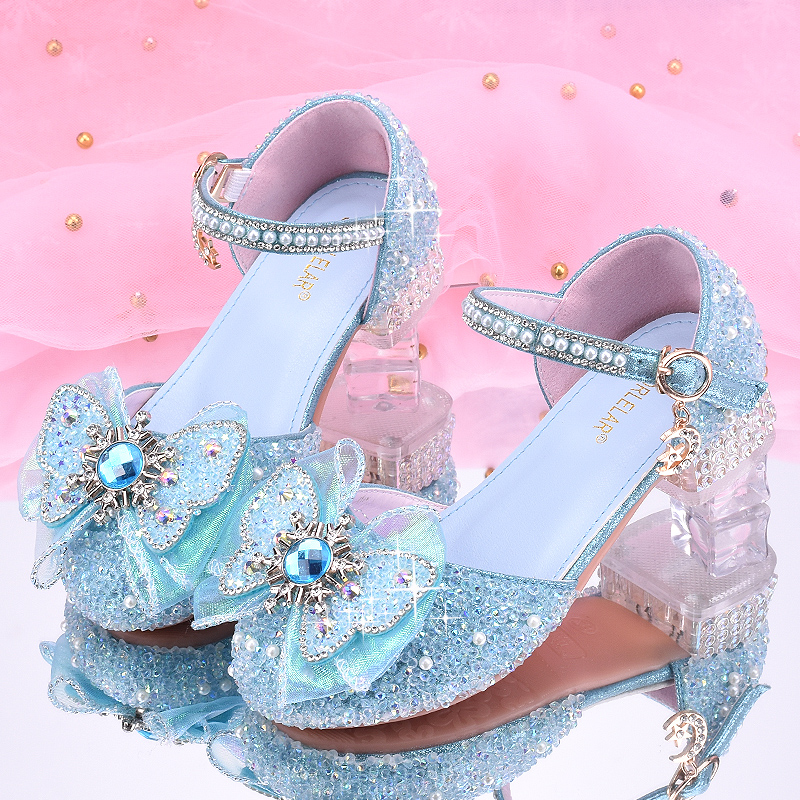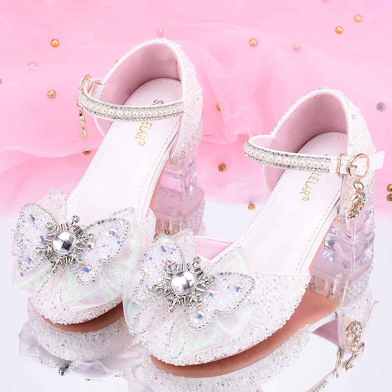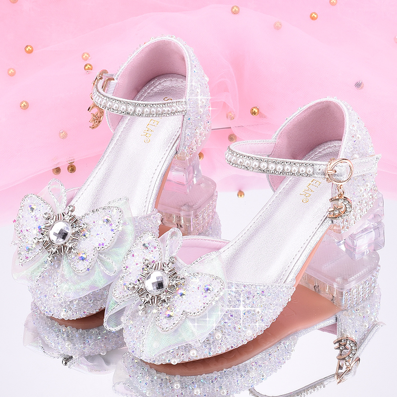 新款儿童高跟鞋水晶鞋钢琴表演出鞋女童皮鞋公主鞋礼服鞋包头单鞋