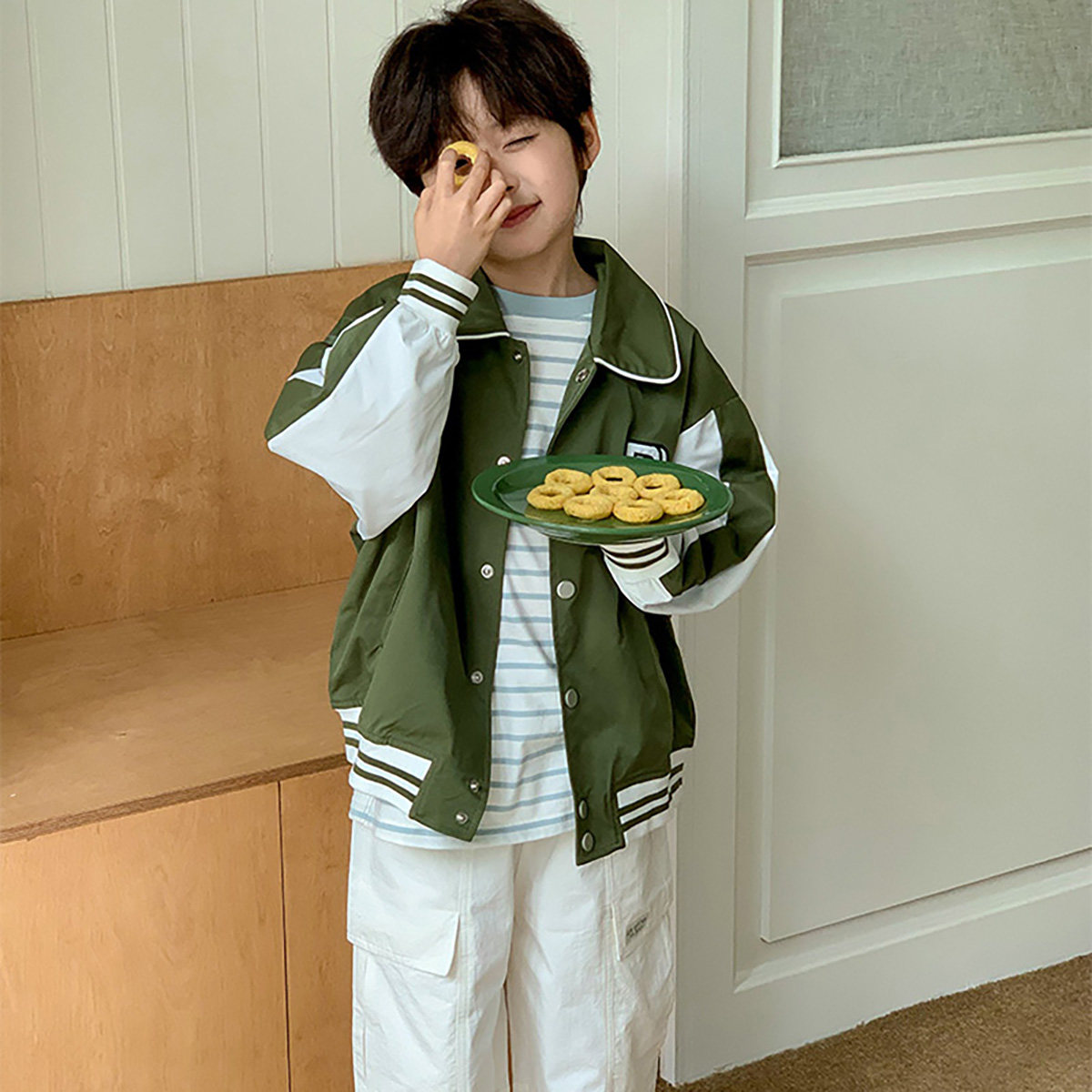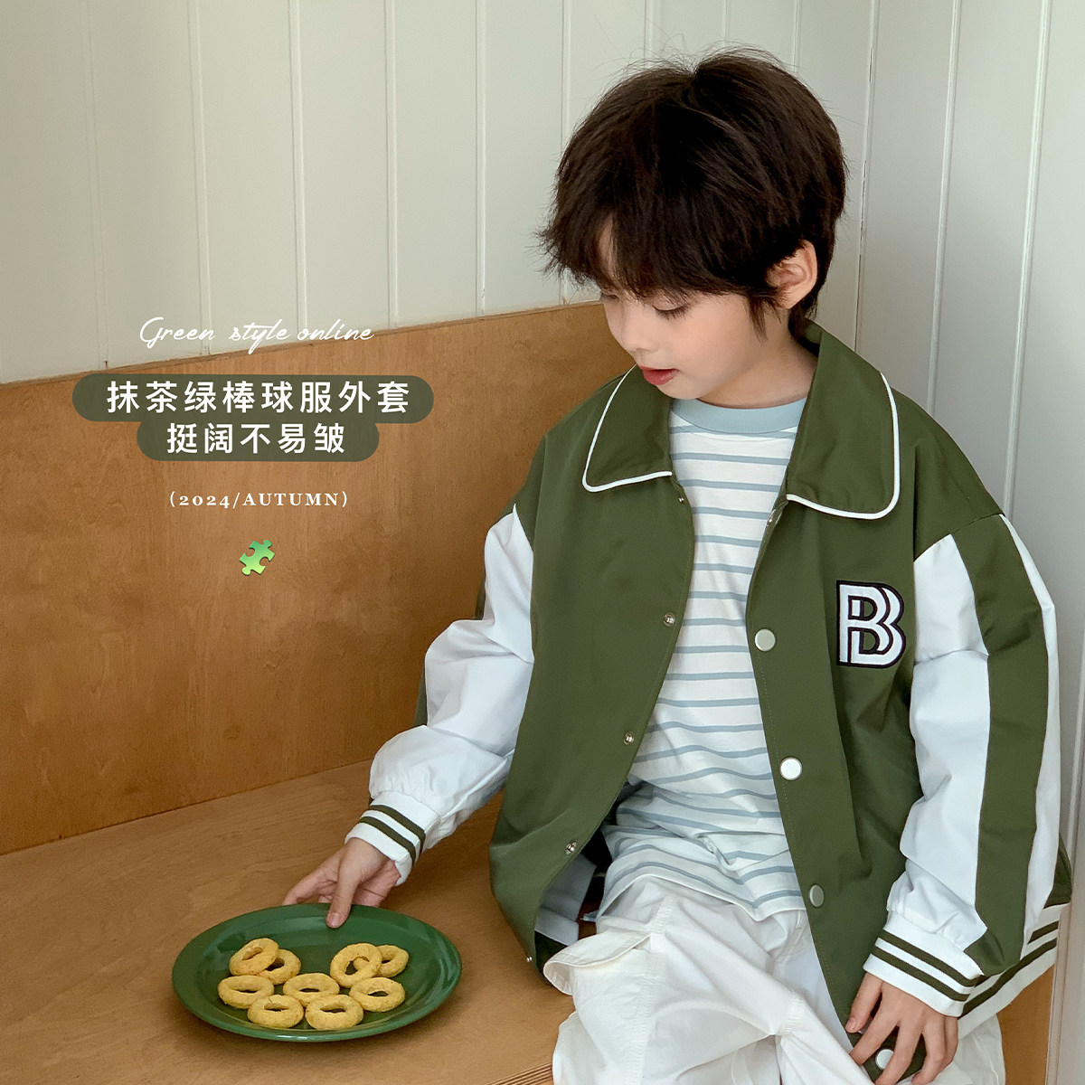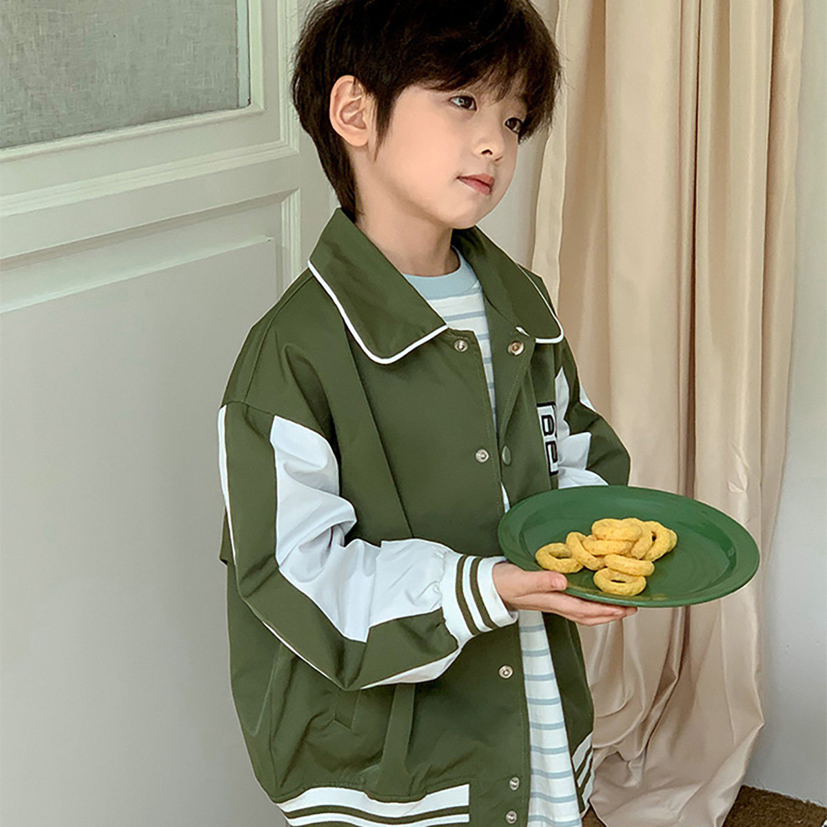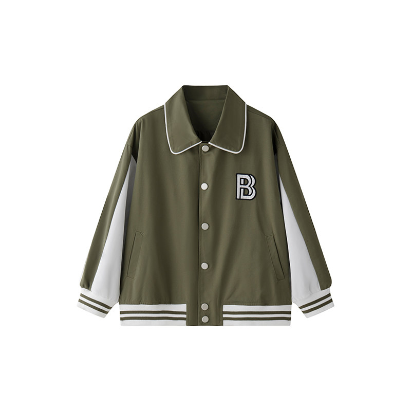 酱麻麻男童外套春秋装2026新款男孩洋气时髦撞色字母儿童棒球服