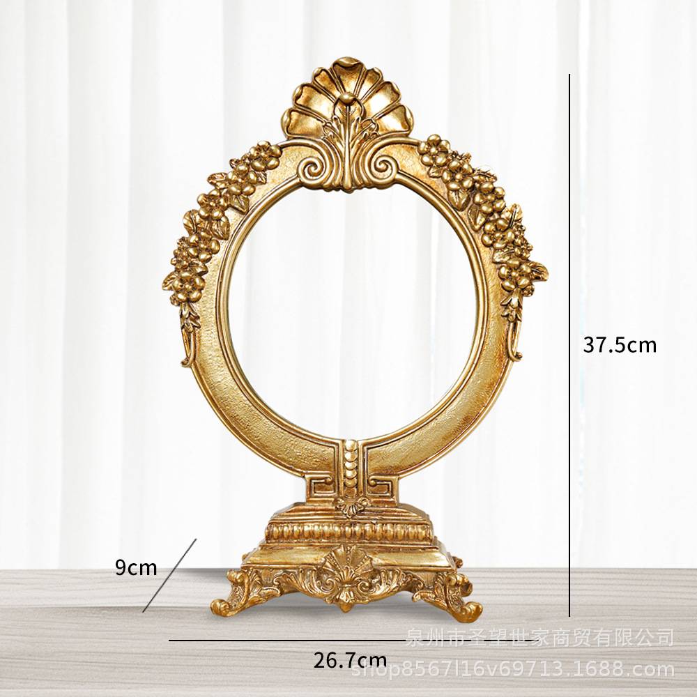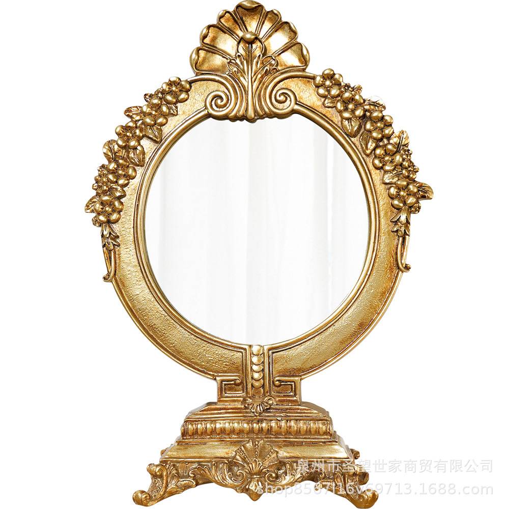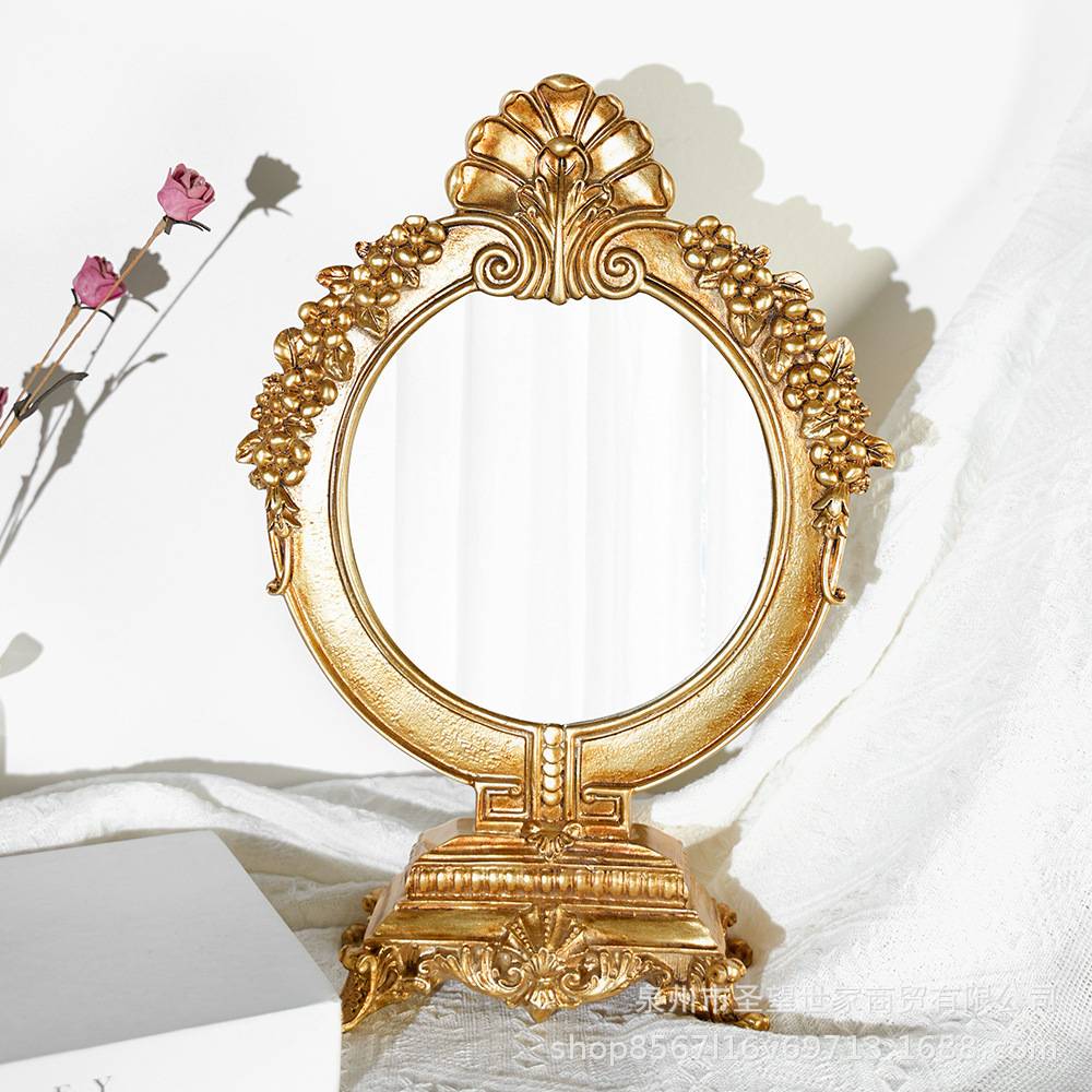 欧式复古宫廷风浮雕台式化妆镜梳妆镜雕花树脂摆件桌面装饰化妆镜