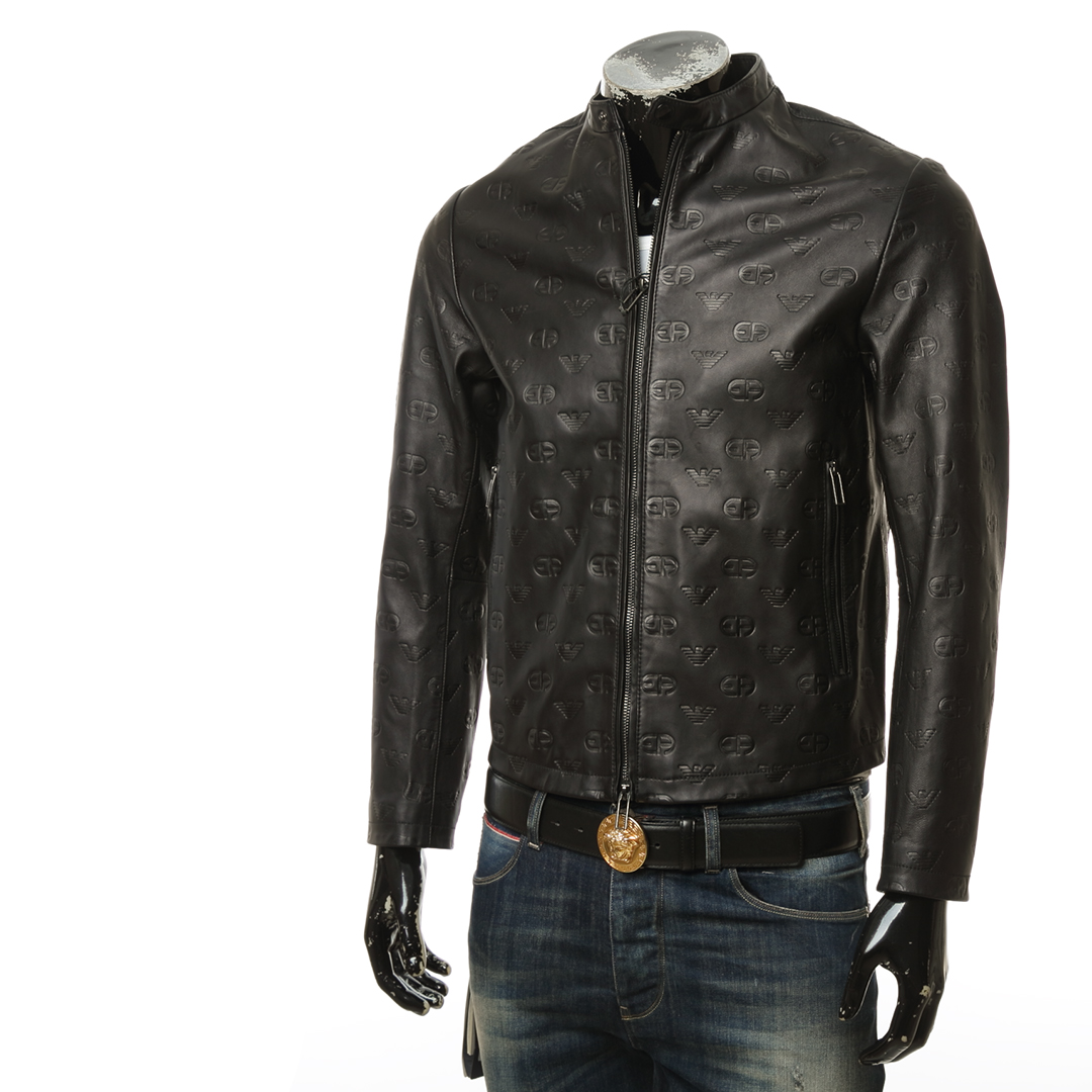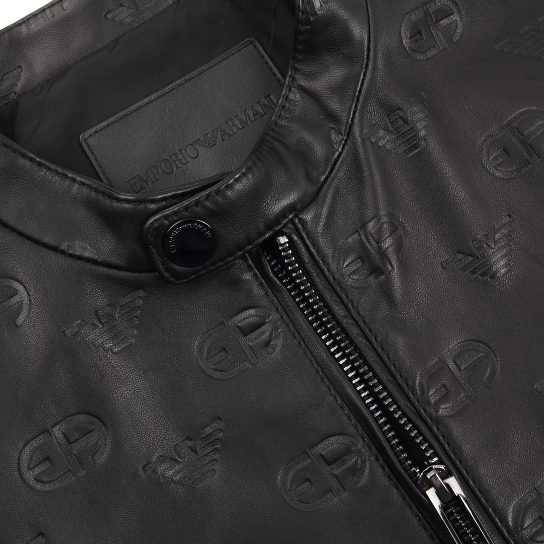 Armani/阿玛尼EA 男士时尚鹰标压纹真皮夹克皮衣 D41R74 D1P7A