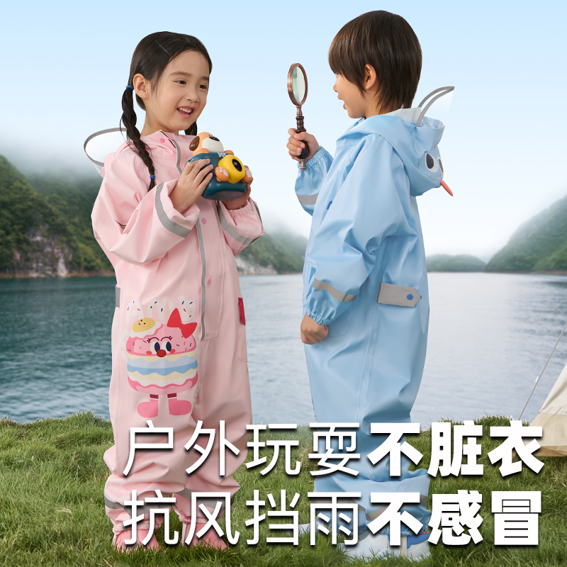 牧萌儿童雨衣2025新款女童小学生男童宝宝幼儿园连体上学防水雨披