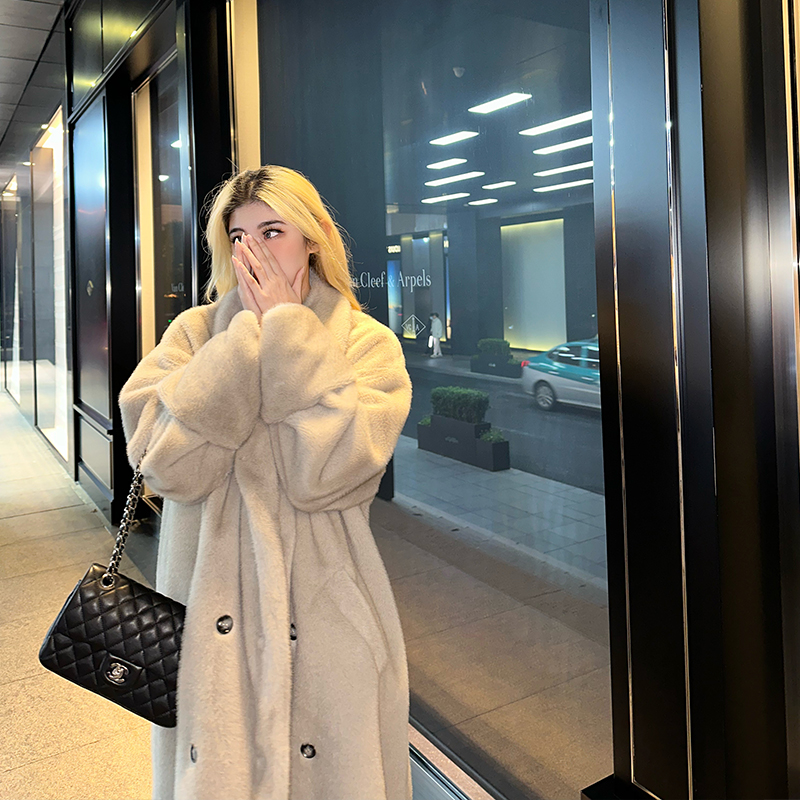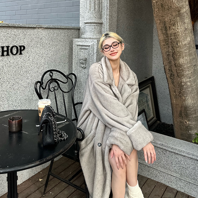PrettyDragon冬季斯拉夫环保皮草长款貂绒大衣女宽松毛毛廓形外套