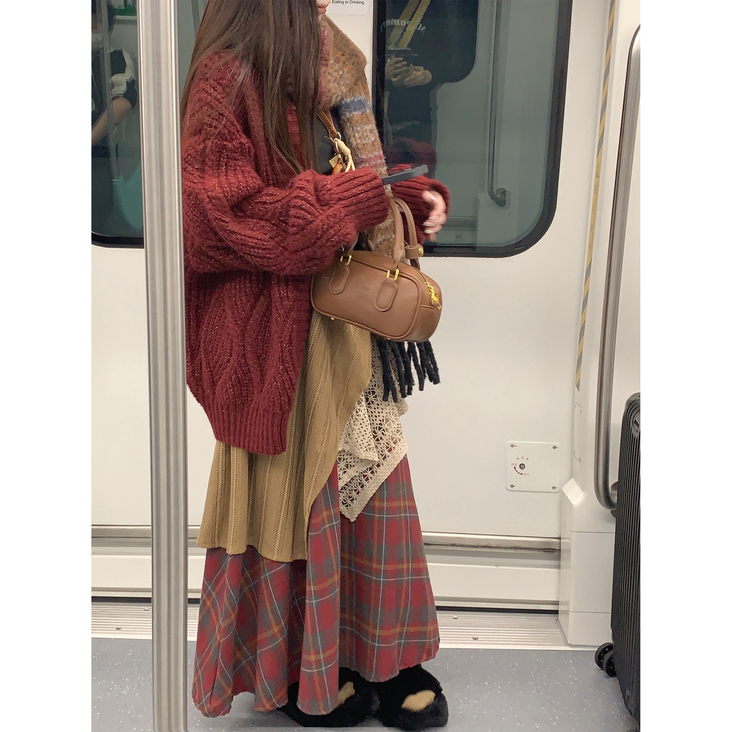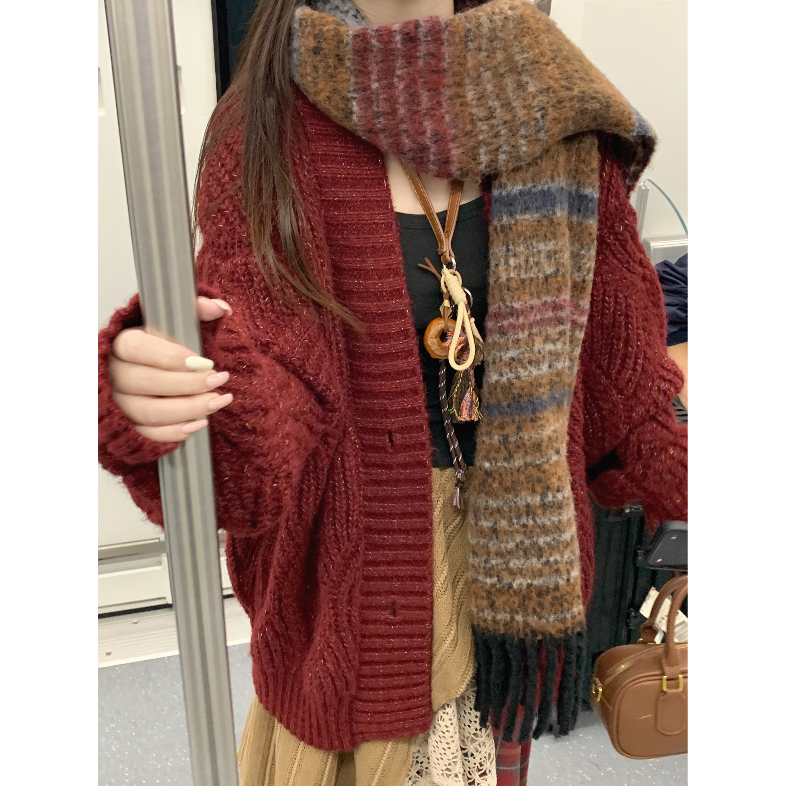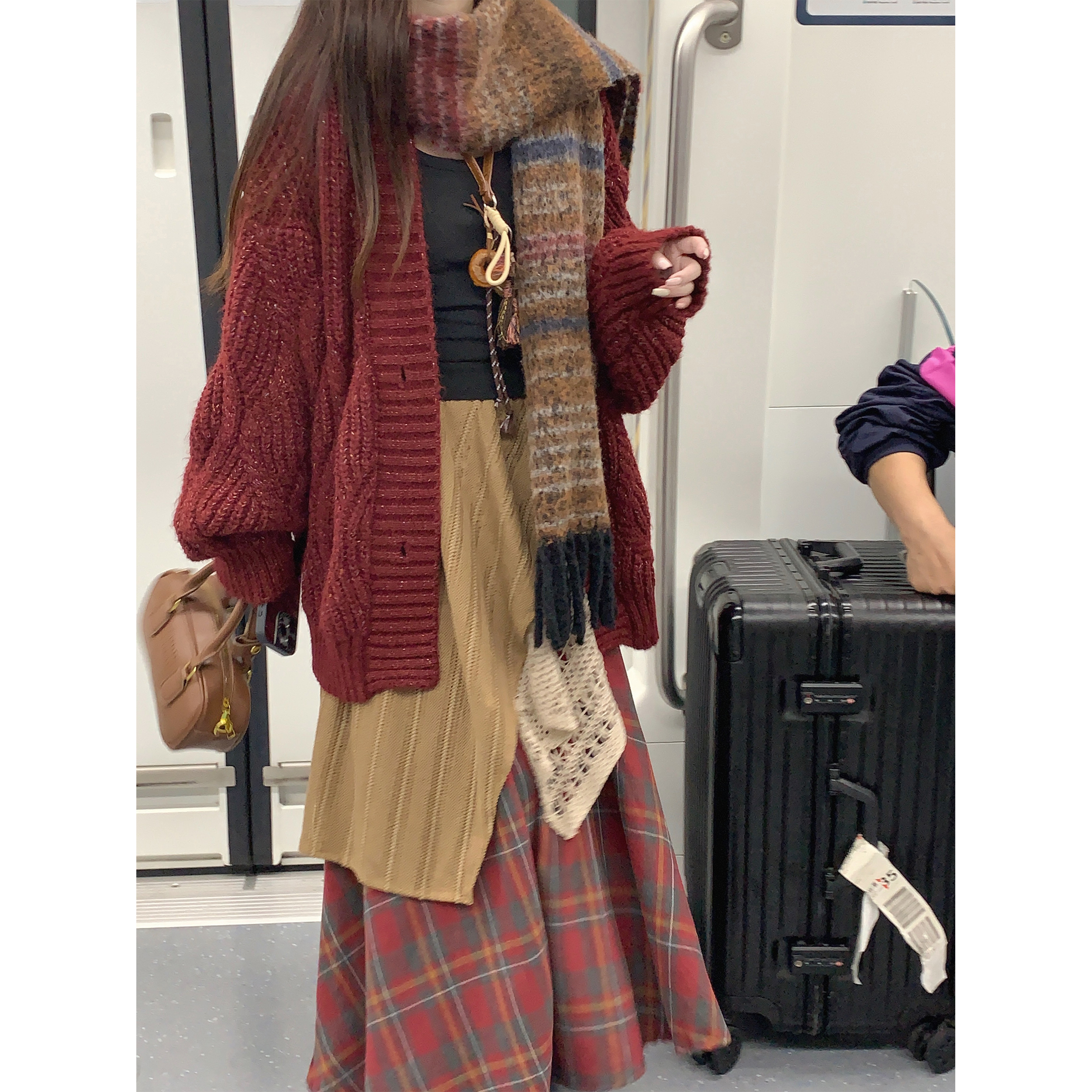【WASEI水冰冰】安可拉红毛衣女秋冬宽松慵懒风复古针织开衫外套