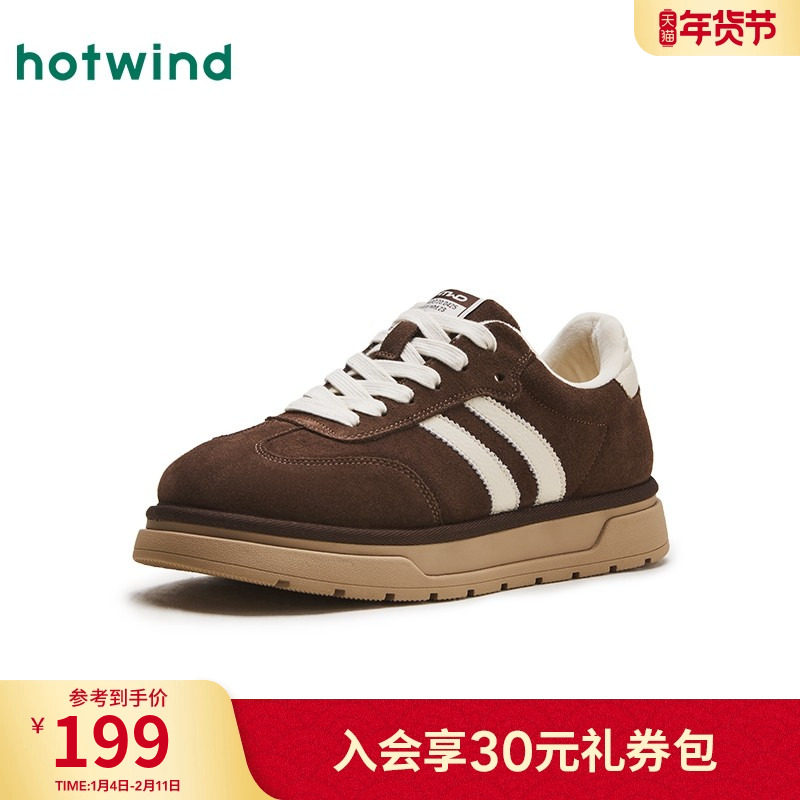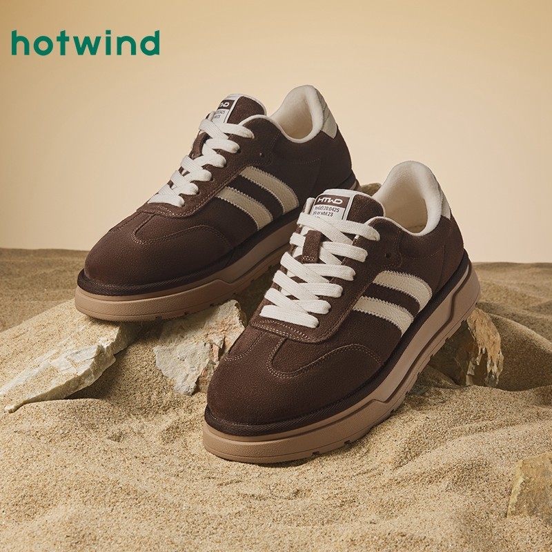 热风男鞋2024年冬季新款板鞋男士时尚休闲鞋厚底透气复古低帮鞋男