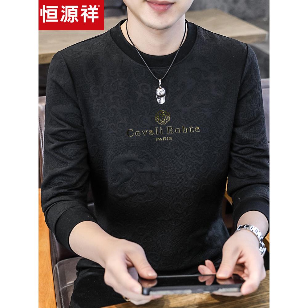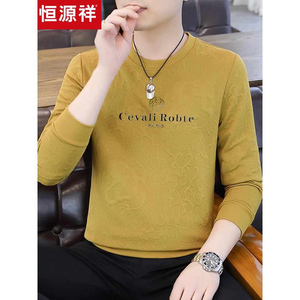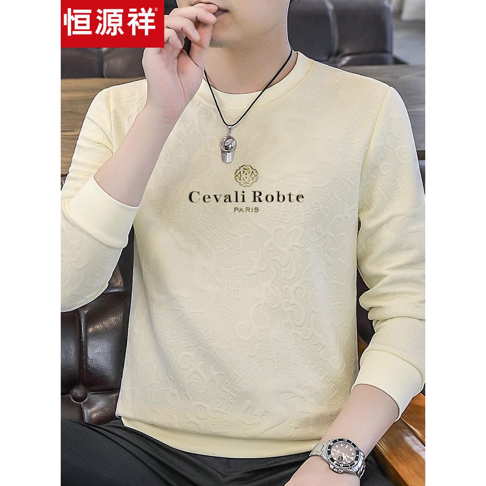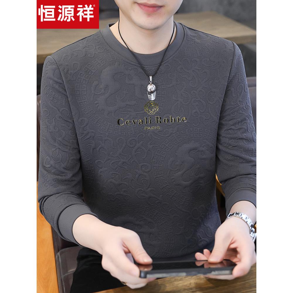 恒源祥长袖t恤男士2025春季新款龙纹提花打底衫上衣休闲男装卫衣