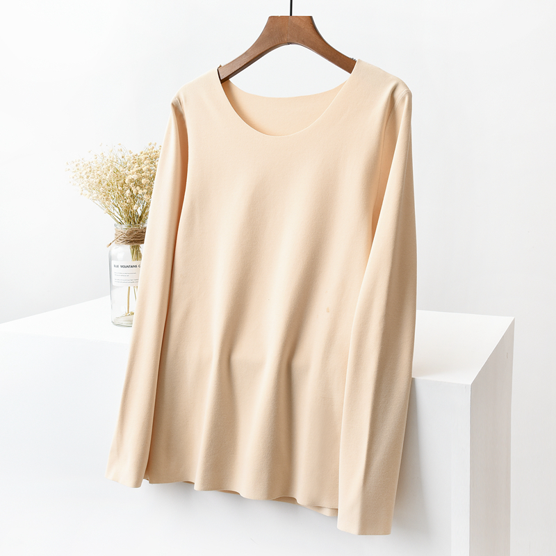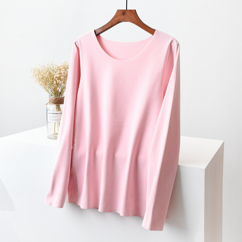 秋冬德绒无痕打底衫女内搭自发热保暖圆领长袖T恤加绒加厚棉上衣