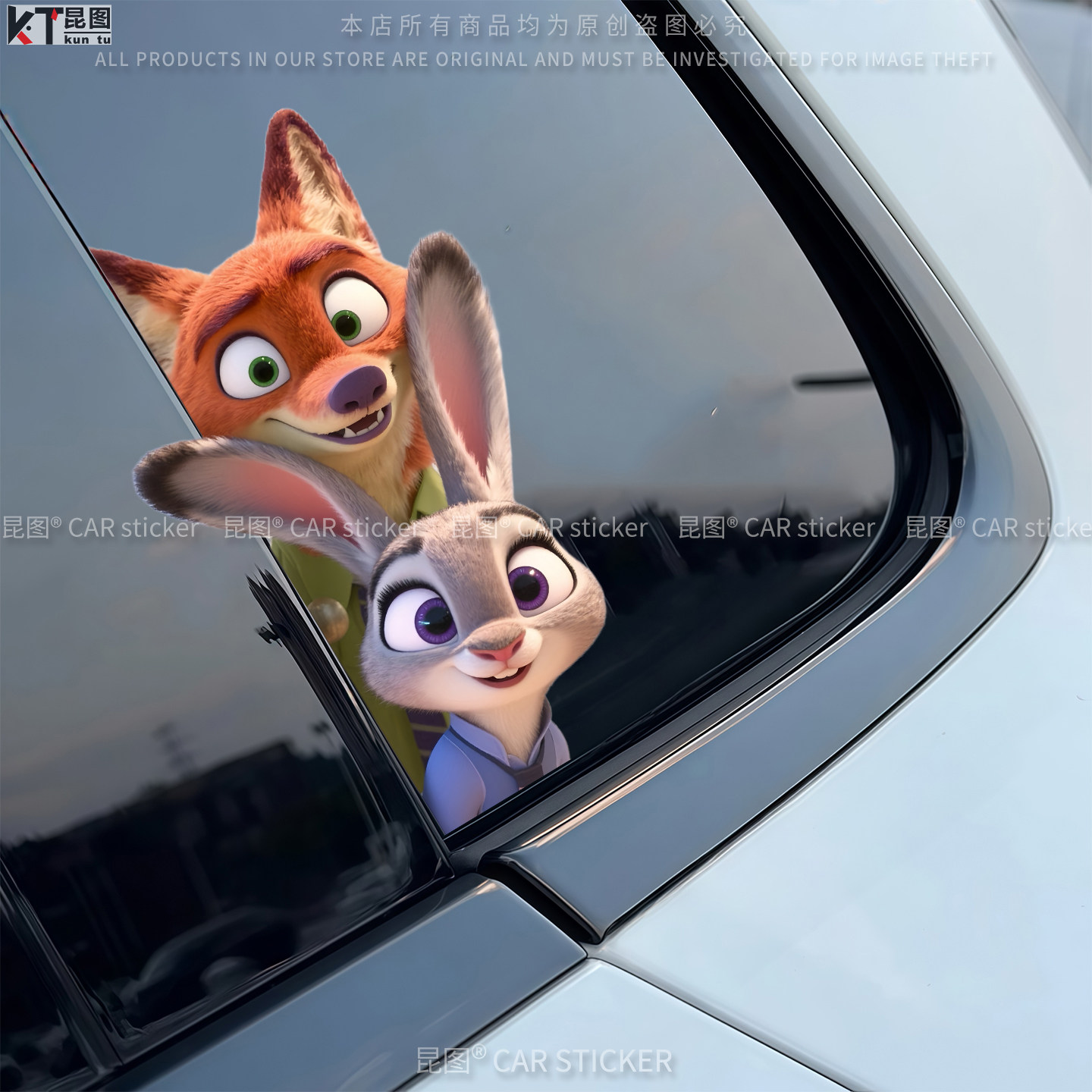 尼克与朱迪汽车贴纸疯狂动物城2卡通装饰车窗玻璃电动车笔记本贴