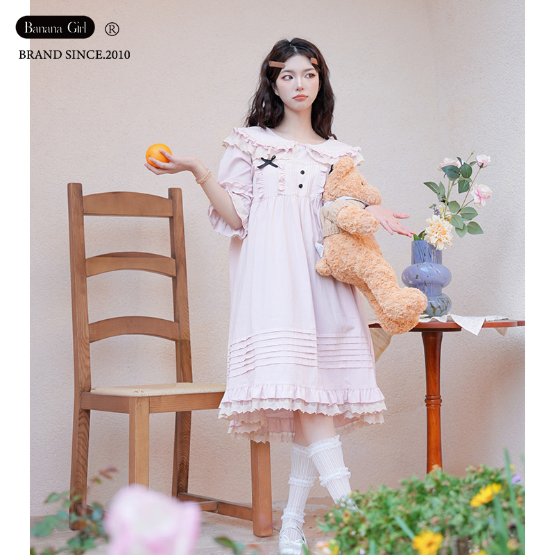 Bananagirl睡衣女春夏新款甜美短袖连衣裙睡裙薄款家居服可外穿女