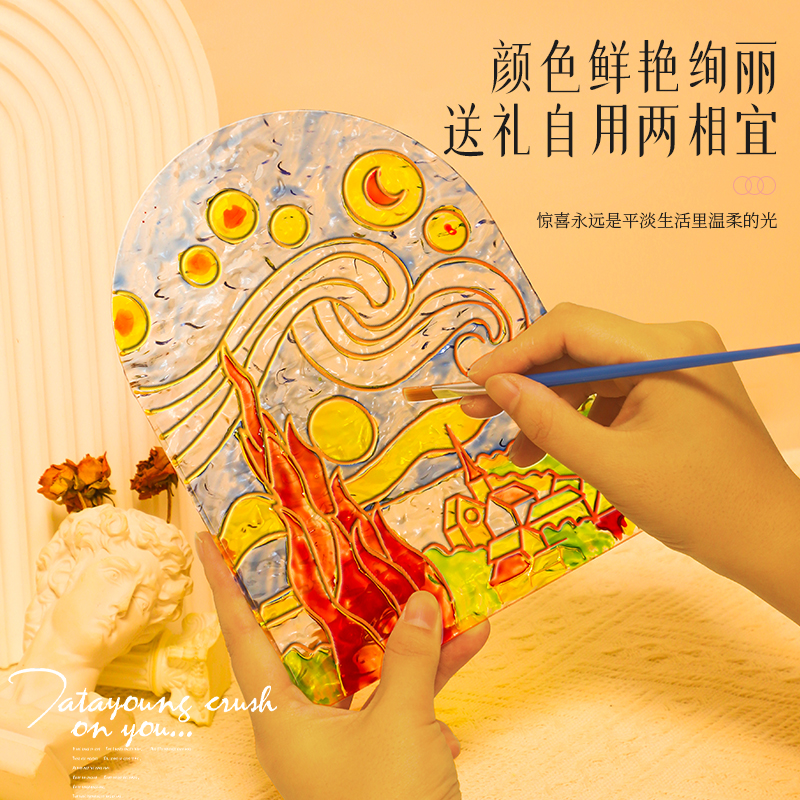 教师节郁金香手绘玻璃画diy材料儿童手工小夜灯水波纹板暖场活动