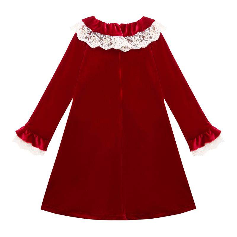 Hanakimi英国品牌秋冬新款圣诞节新年红丝绒女童公主生日礼物礼服