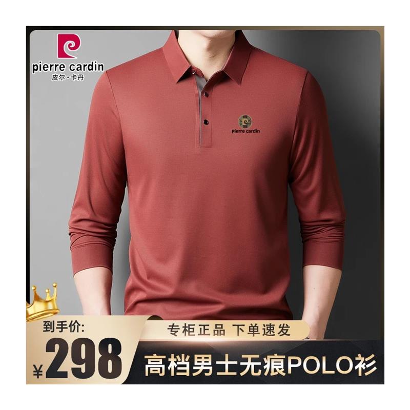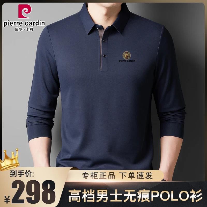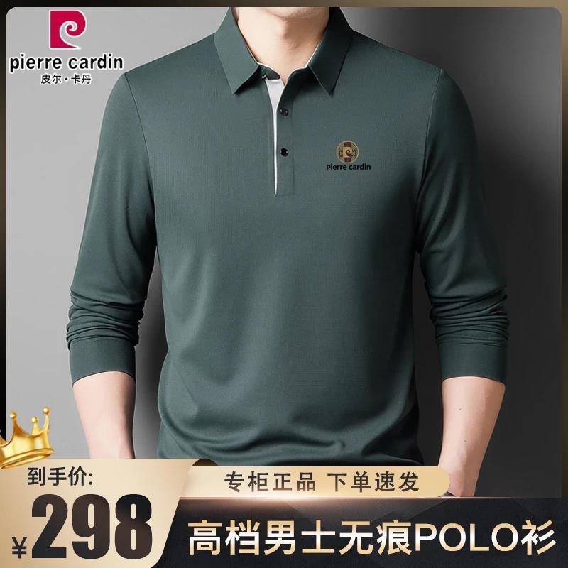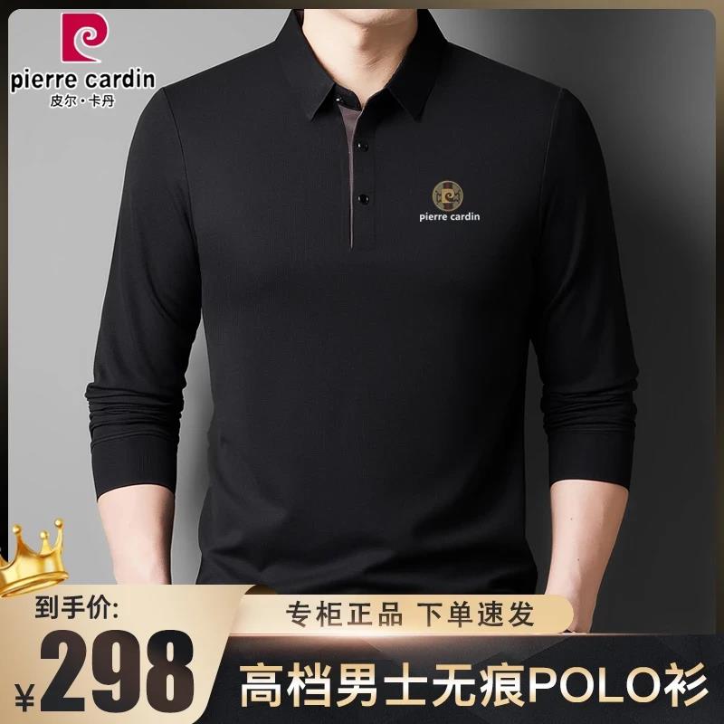 皮尔卡丹高档桑蚕丝长袖T恤秋季中年男士休闲翻打底上衣POLO衫男