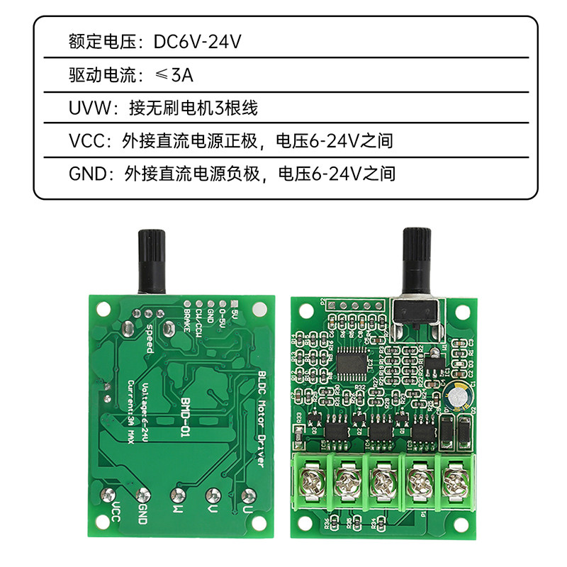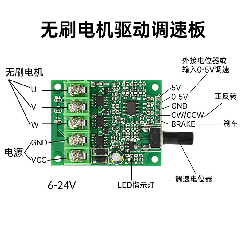 DC6V-24V直流三相无刷无霍尔电机控制器调速器马达驱动带电位器