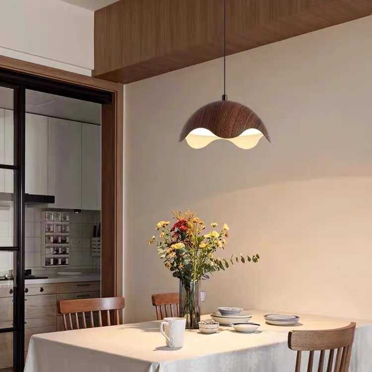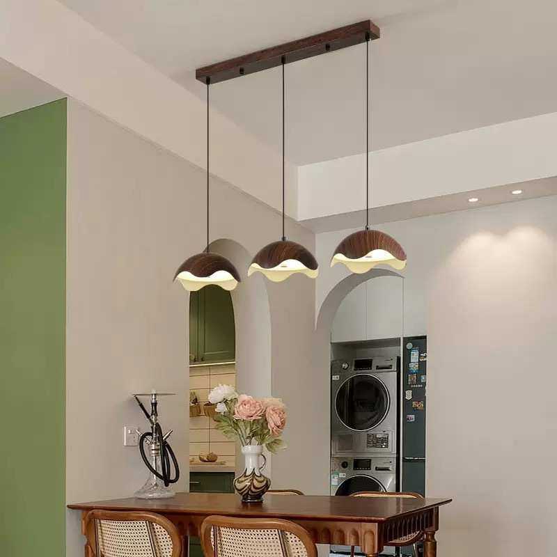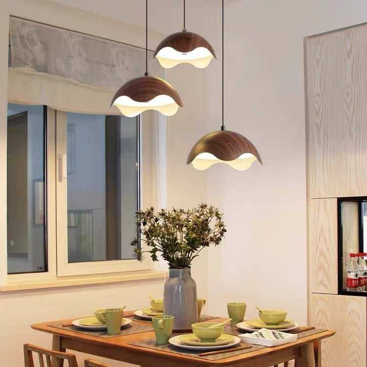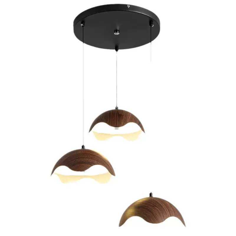 中古风餐厅灯复古胡桃木纹三头饭厅餐桌灯新中式禅意茶室吧台吊灯
