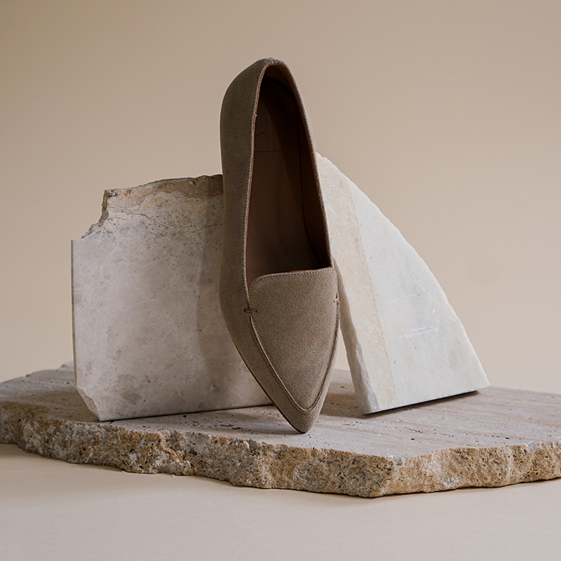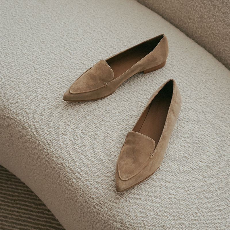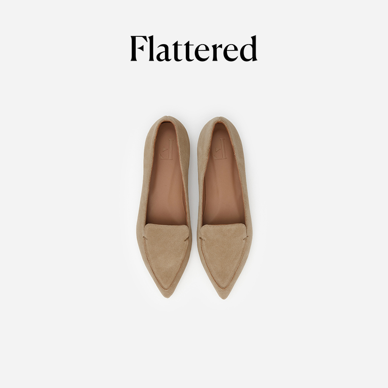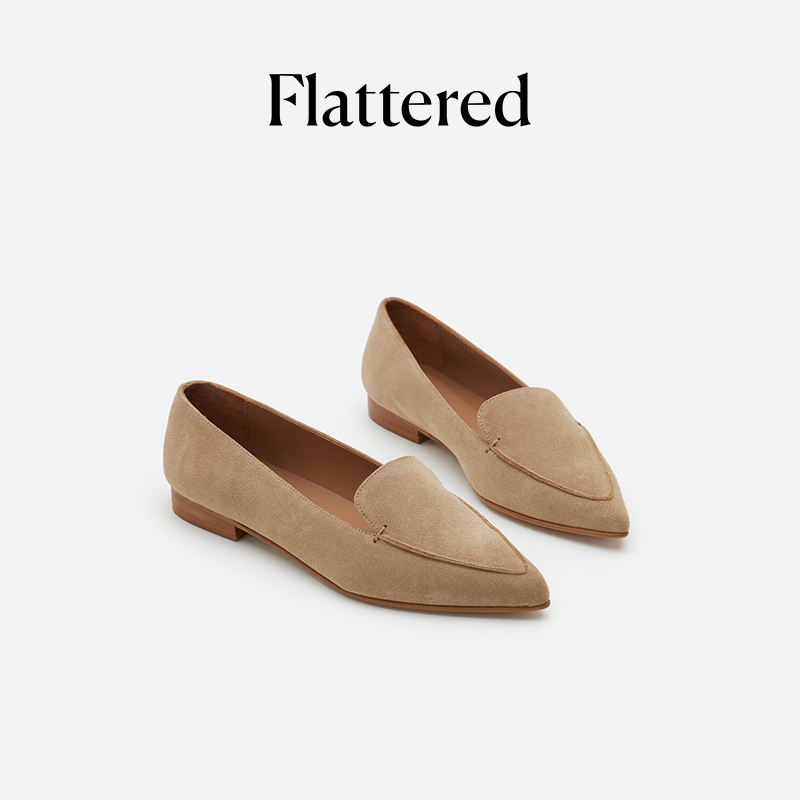 Flattered Alex女士真皮绒面尖头平底乐福鞋时尚老钱风通勤单鞋