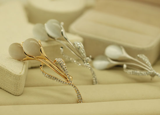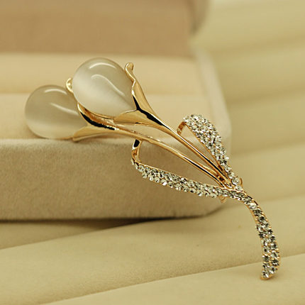 包邮猫眼水晶女优雅衣领丝巾胸针