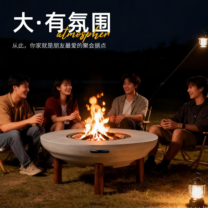 牧行围炉煮茶桌烧烤炉家用户外庭院加大火盆碳炉冬日烤火炉套装