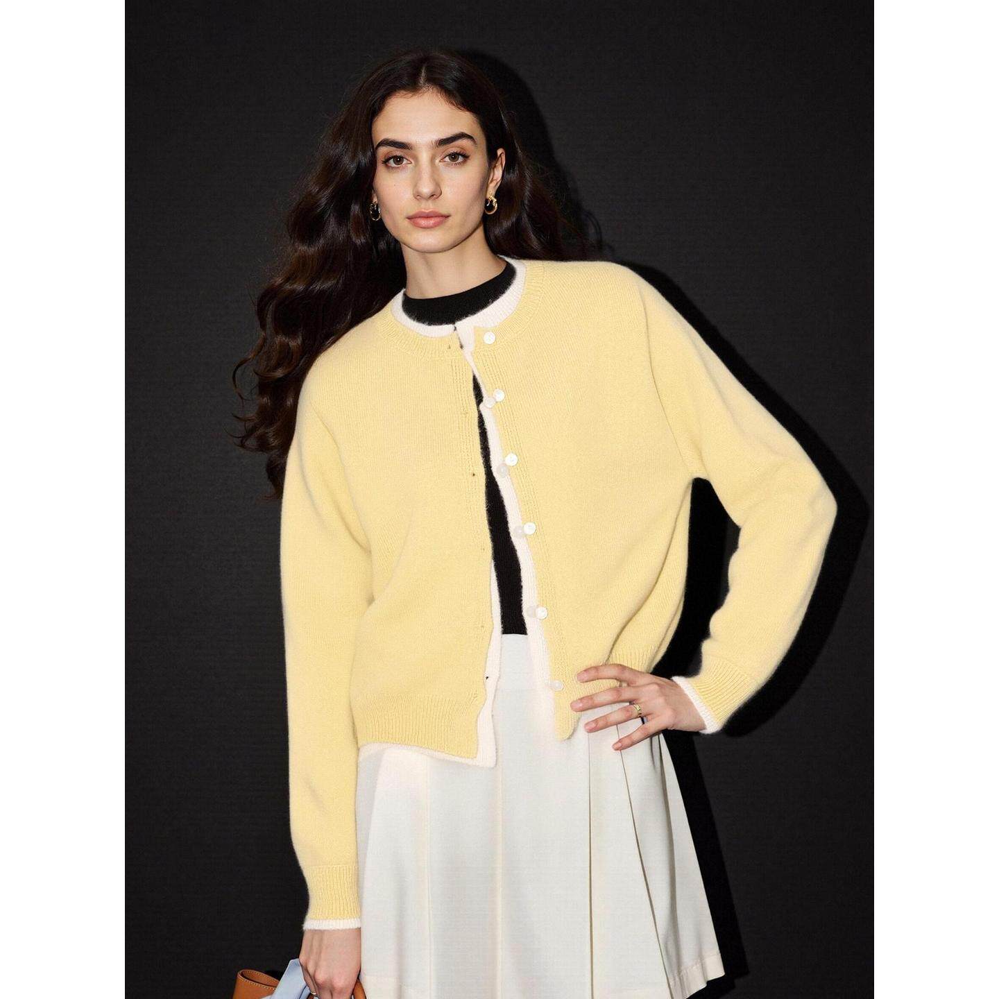 Basic House/百家好黄色假两件针织开衫女2026春季新款设计感上衣