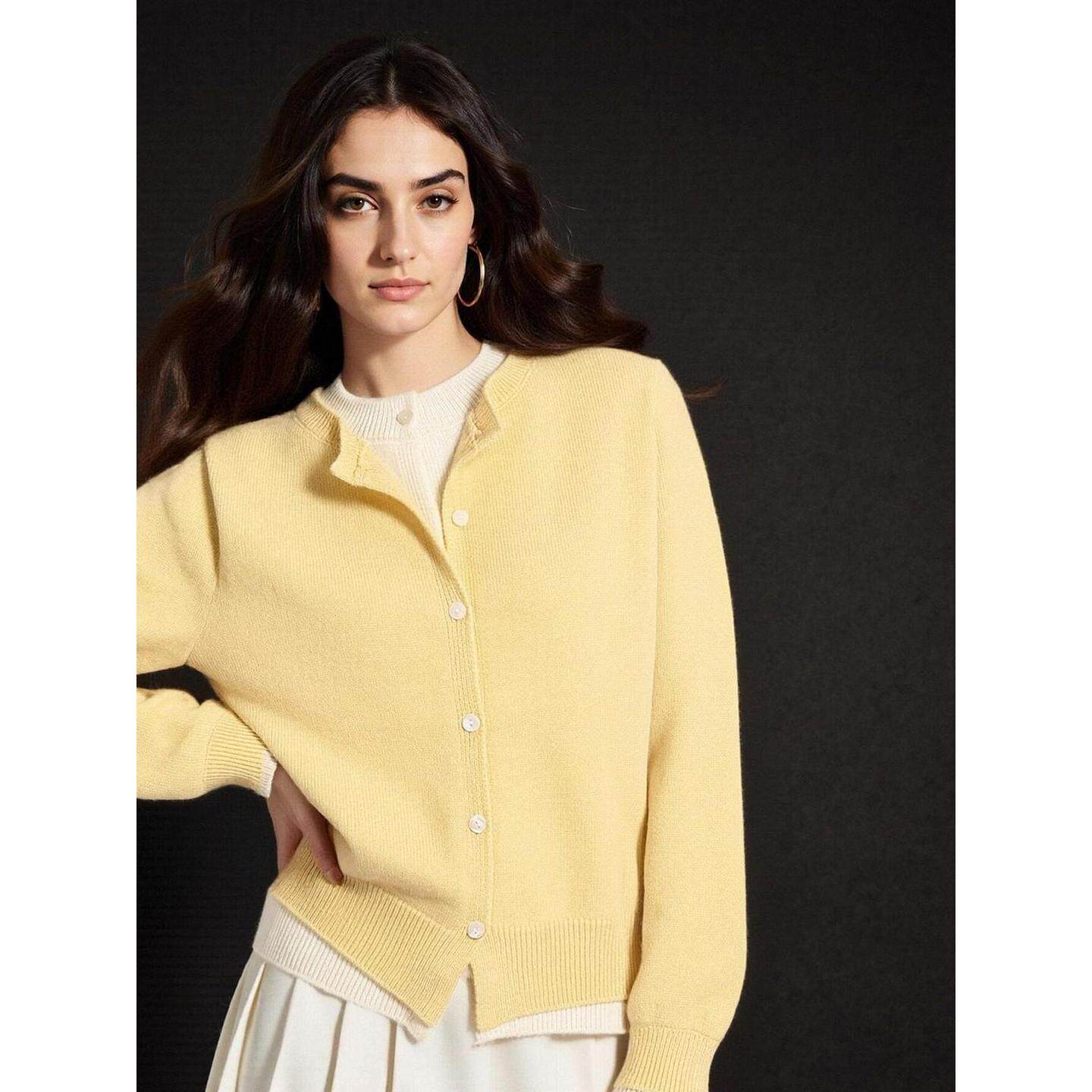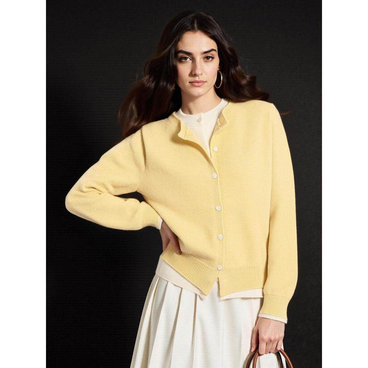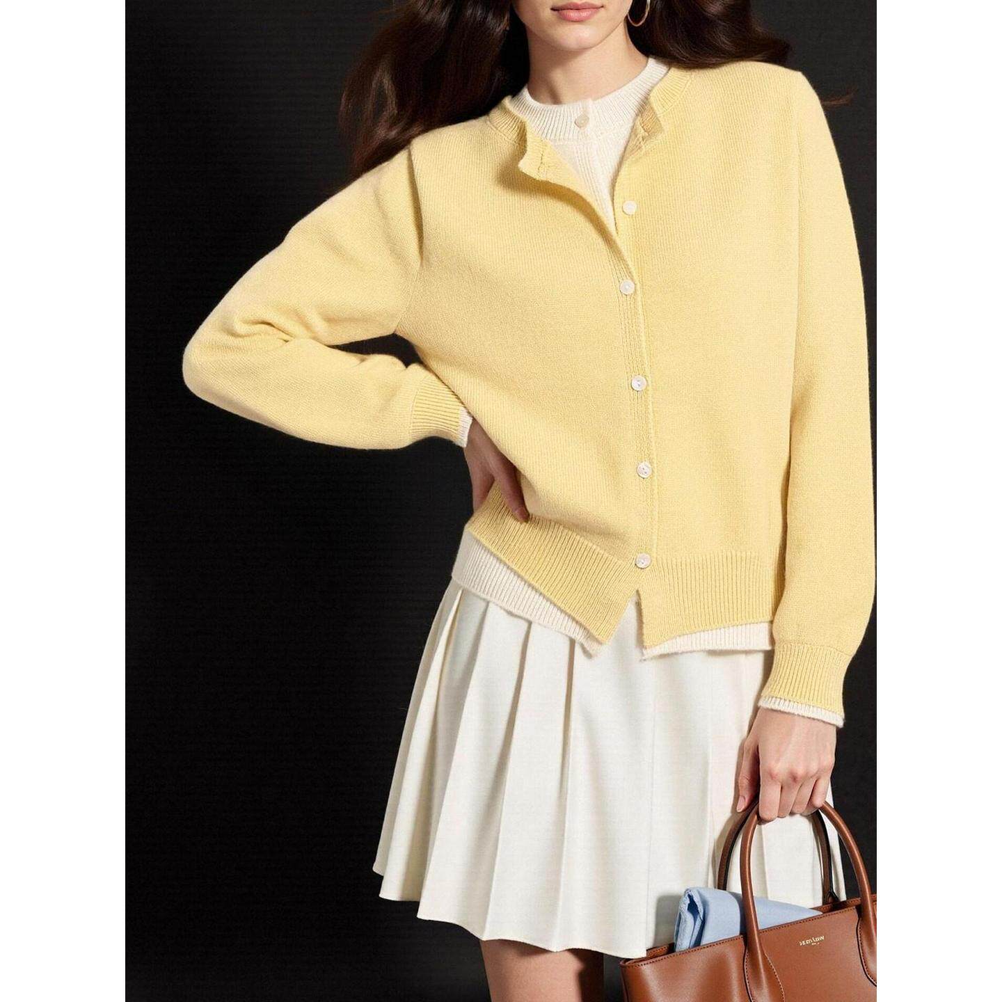 百家好设计感黄色假两件针织开衫