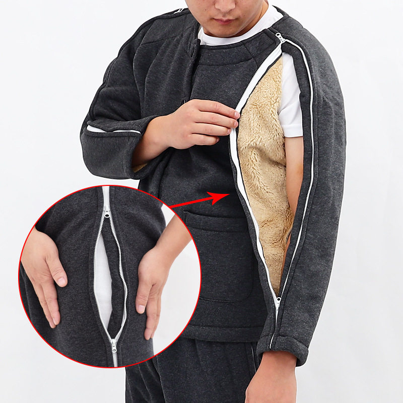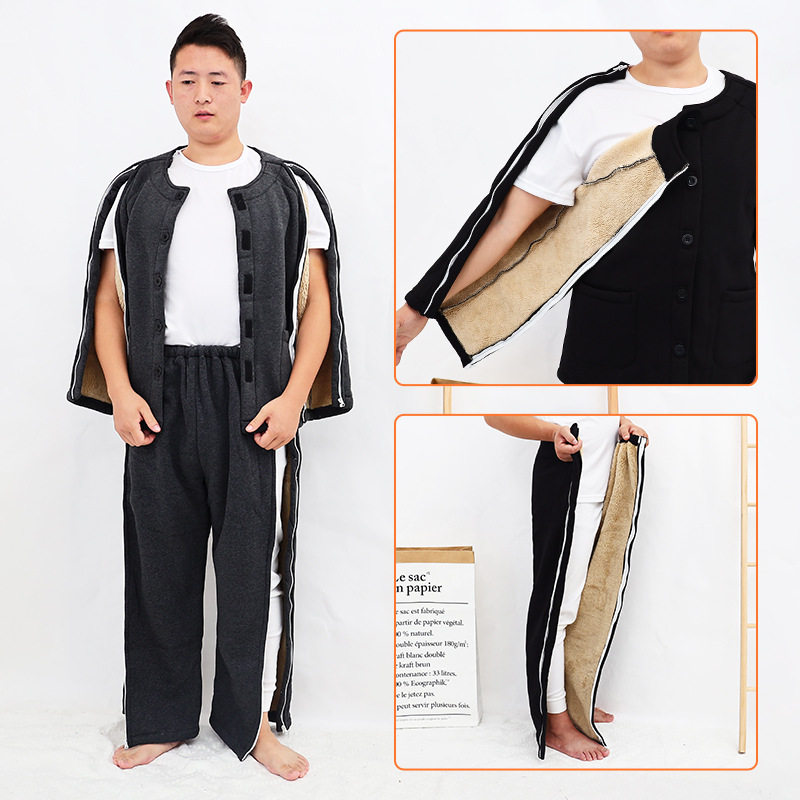 冬卧床病人全开式加厚护理服男女瘫痪针灸老人易穿脱保暖棉衣棉裤