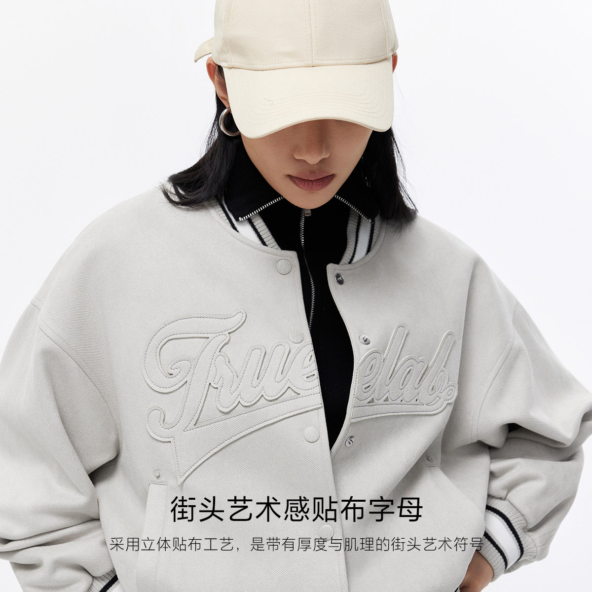 绫致ONLY2025秋冬新款休闲撞色贴布字母棒球服宽松外套女