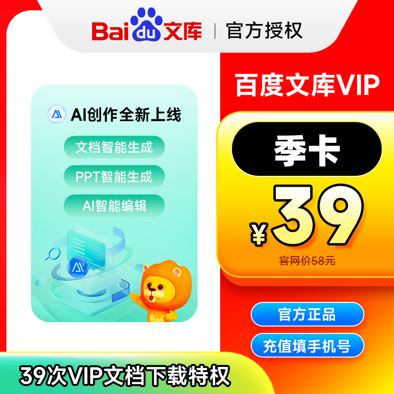 【官方直充】百度文库会员12个月年卡baidu文库vip会员月/季/年卡