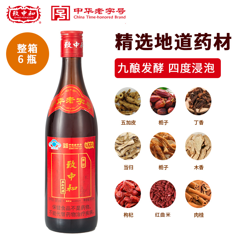 整箱致中和牌五加皮酒38度家饮500ml6瓶保健养生地道药材自饮养生