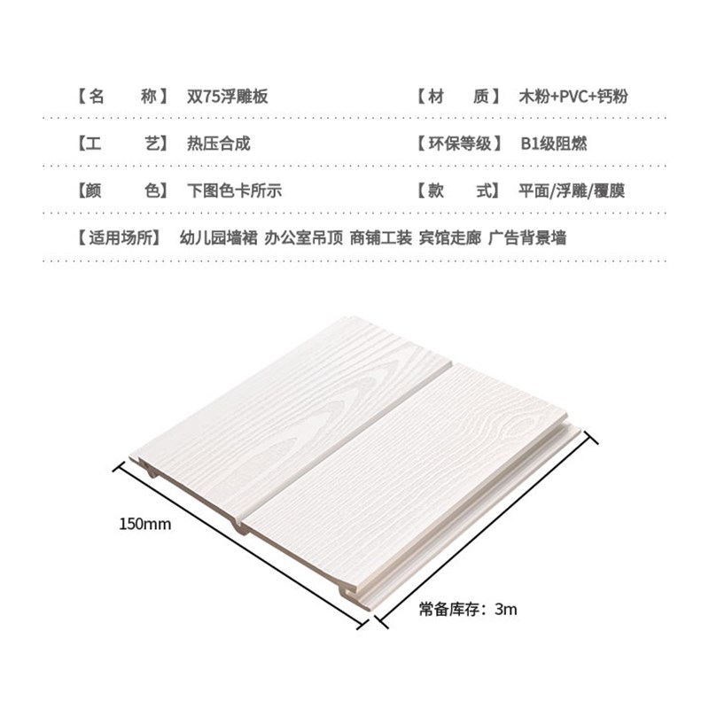 生态木75浮雕板阳台吊顶天花pvc墙裙护墙板背景墙绿可木免漆板